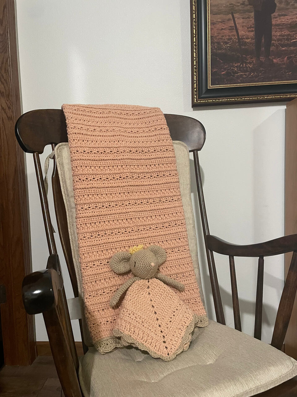 I have been making snugglers for my friends who are having kids. Also a couple years ago I made a jumbo version of one of those whales that you can find that’re always marketed as beginner friendly. I don’t have any pictures of it but it was about six inches in diameter, i hear the little one likes to kick it around like a ball.