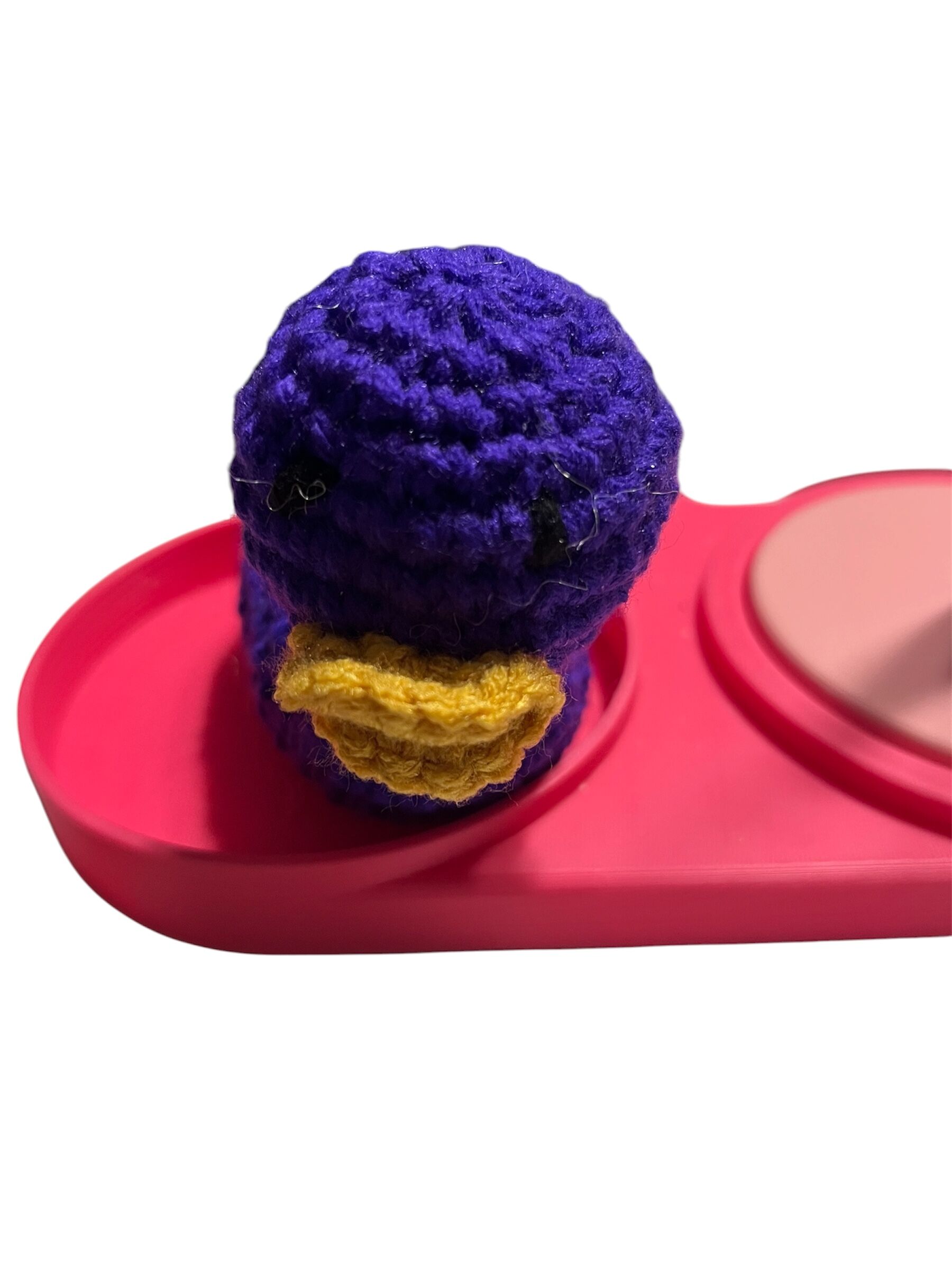 Here’s my first plushie I have made with no pattern. My final pattern has 1 more round. I will post pictures of my second make of this duck which includes a small bow tie tomorrow .