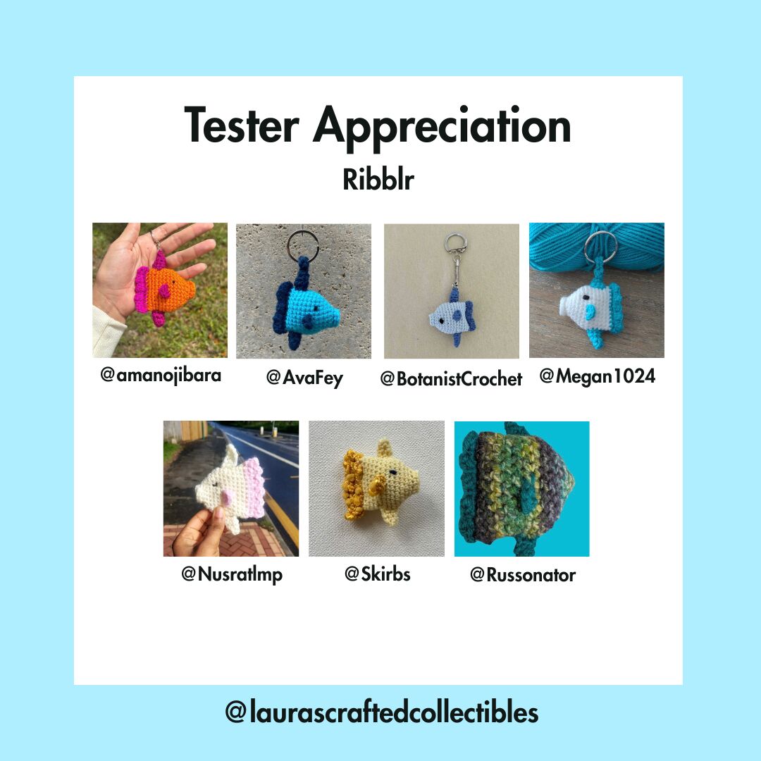 Testers (via Ribblr): @amanojibara, @AvaFey, @BotanistCrochet, @Megan1024, @Nusratlmp, @Skirbs and @Russonator. Thank you, guys, for testing this pattern. You did awesome, and your keychains look brilliant!