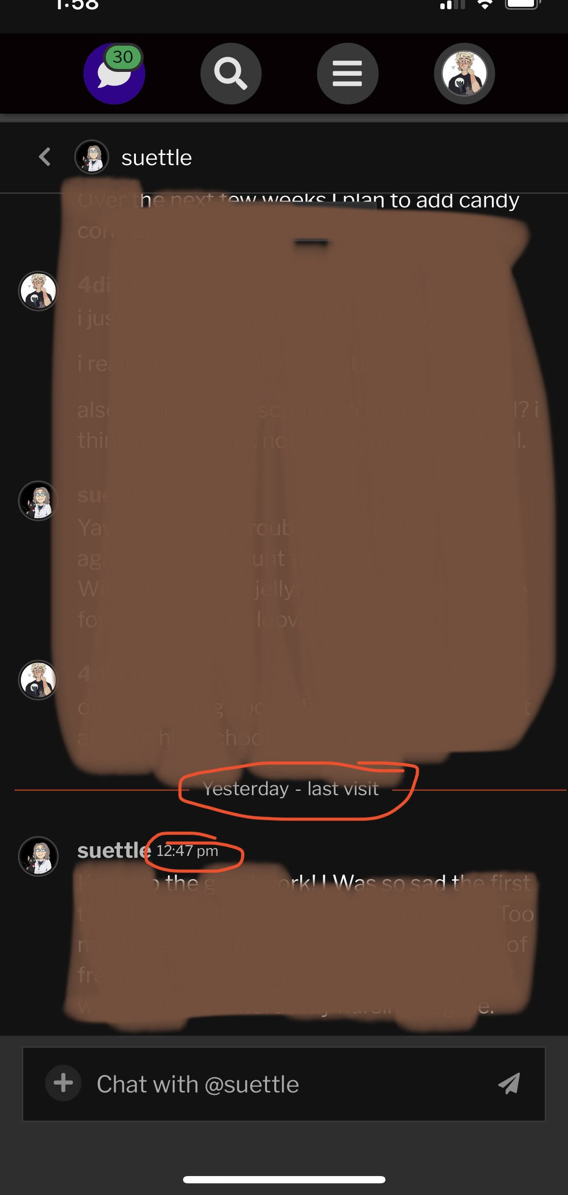 it says i have 30 messages from phoenix, which i do not. just moments ago it said i had no messages. the same happened for suettle, but she only messaged once.