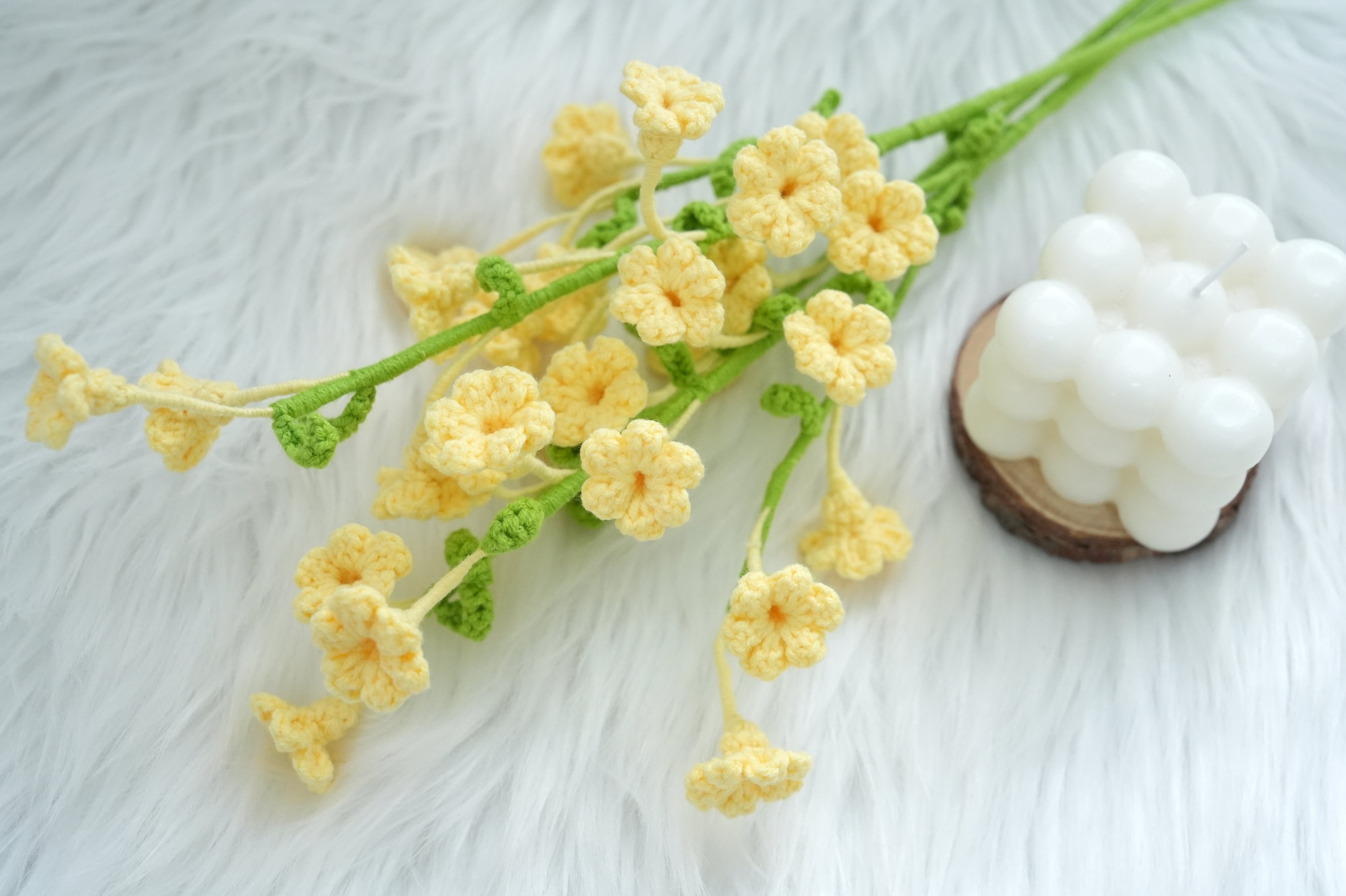 You could find separate free patterns for leaves, flowers, and a tutorial for how to wrap wires with yarn