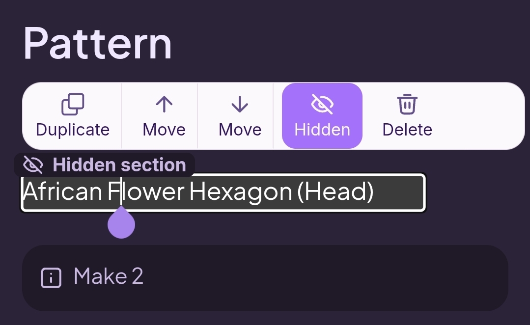 If you click on a section of the pattern while editing you will have a bar above your line with different options. If you scroll right, you will see it say either visible or hidden. You want to make sure each section says visible. Check all header and subheader lines.