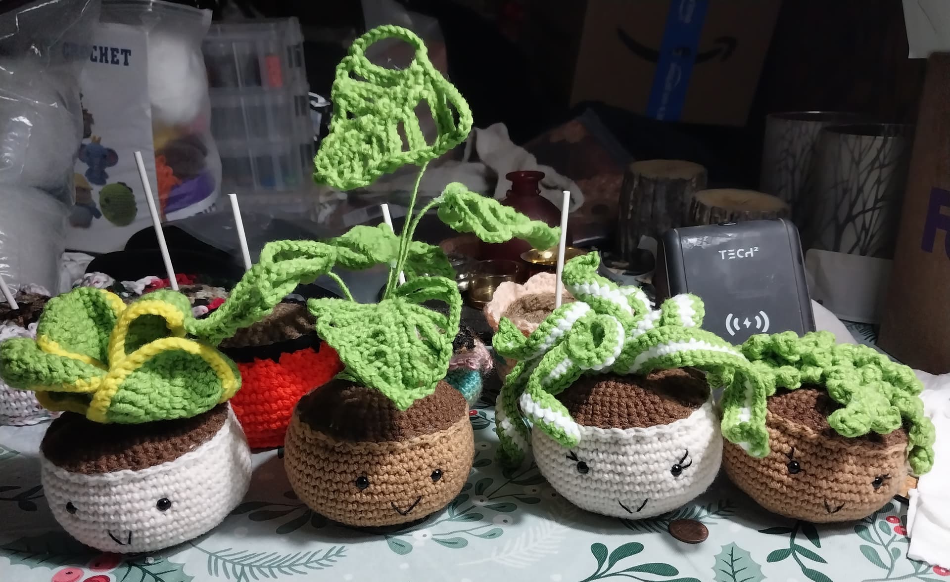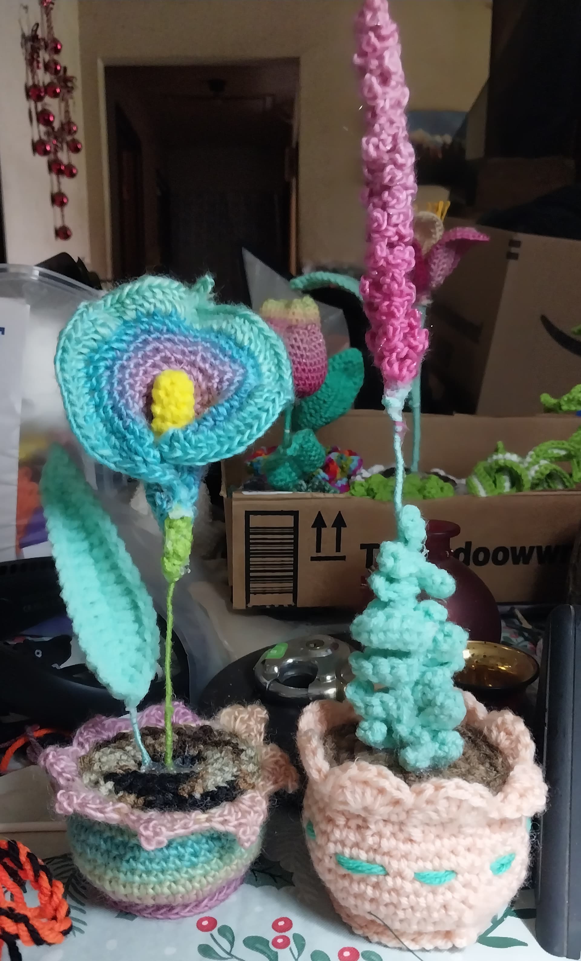 The last one i made was for a super king bed. It was for my daughter. I usually have about 3 afghans in the eorks. That way if i get bored with one, i can change out. But i do a lot of crocheting for a woman that is involved with several hospice locations and senior care facilities. The last thing she requested was for some very small critters. And flower pots with flowers.
