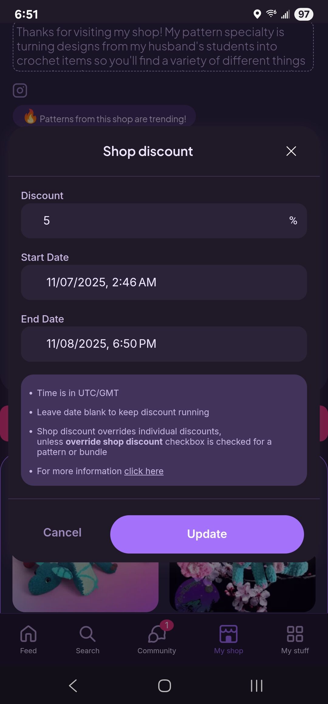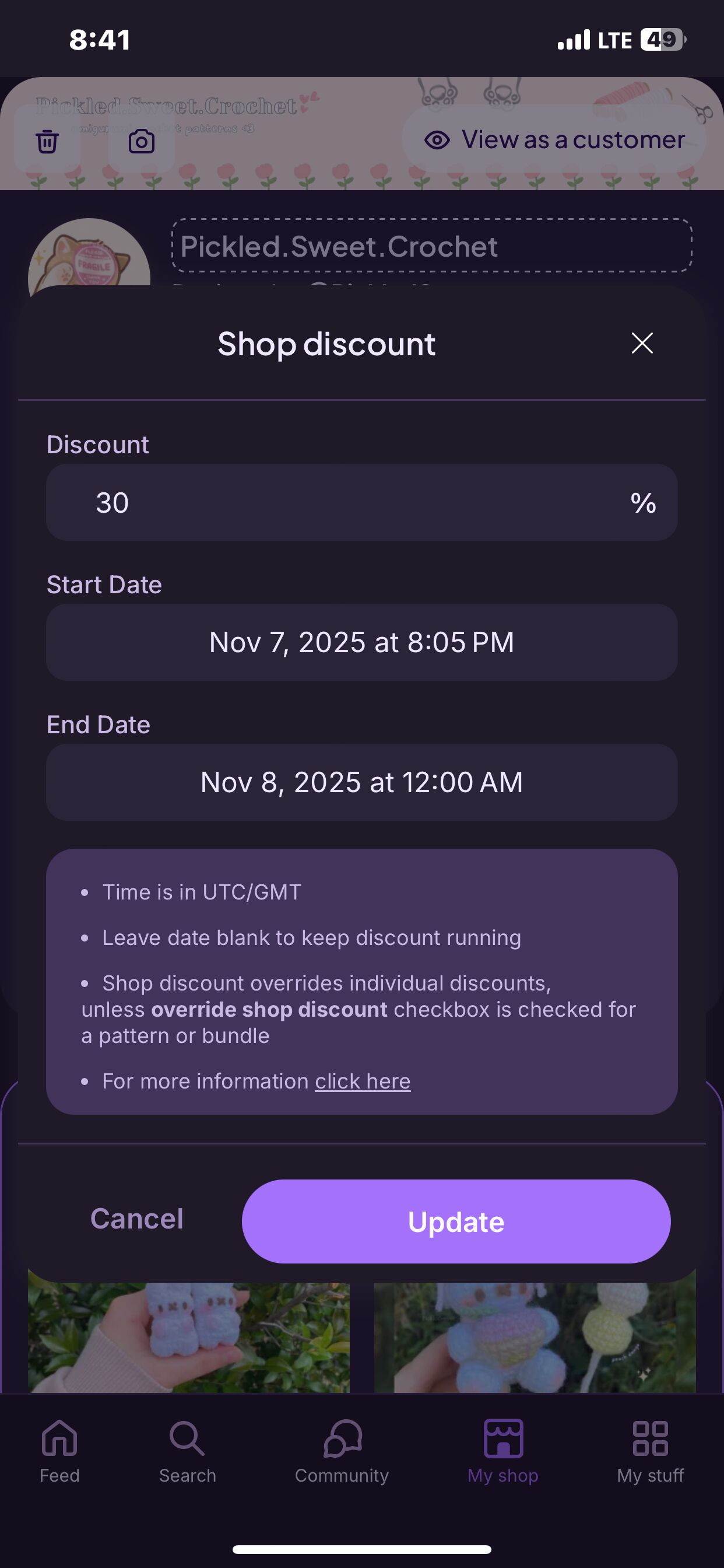 I can’t set a shop sale this is annoying as I wanted to set one now