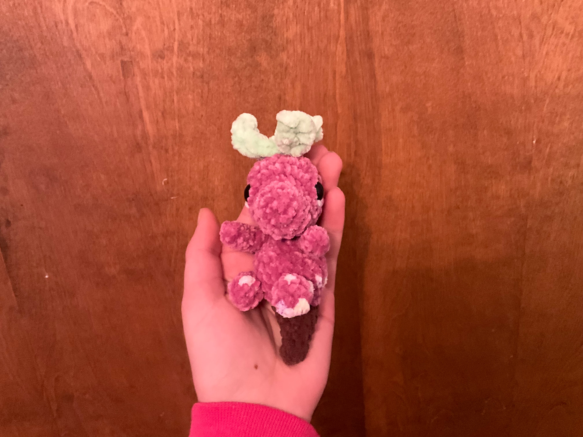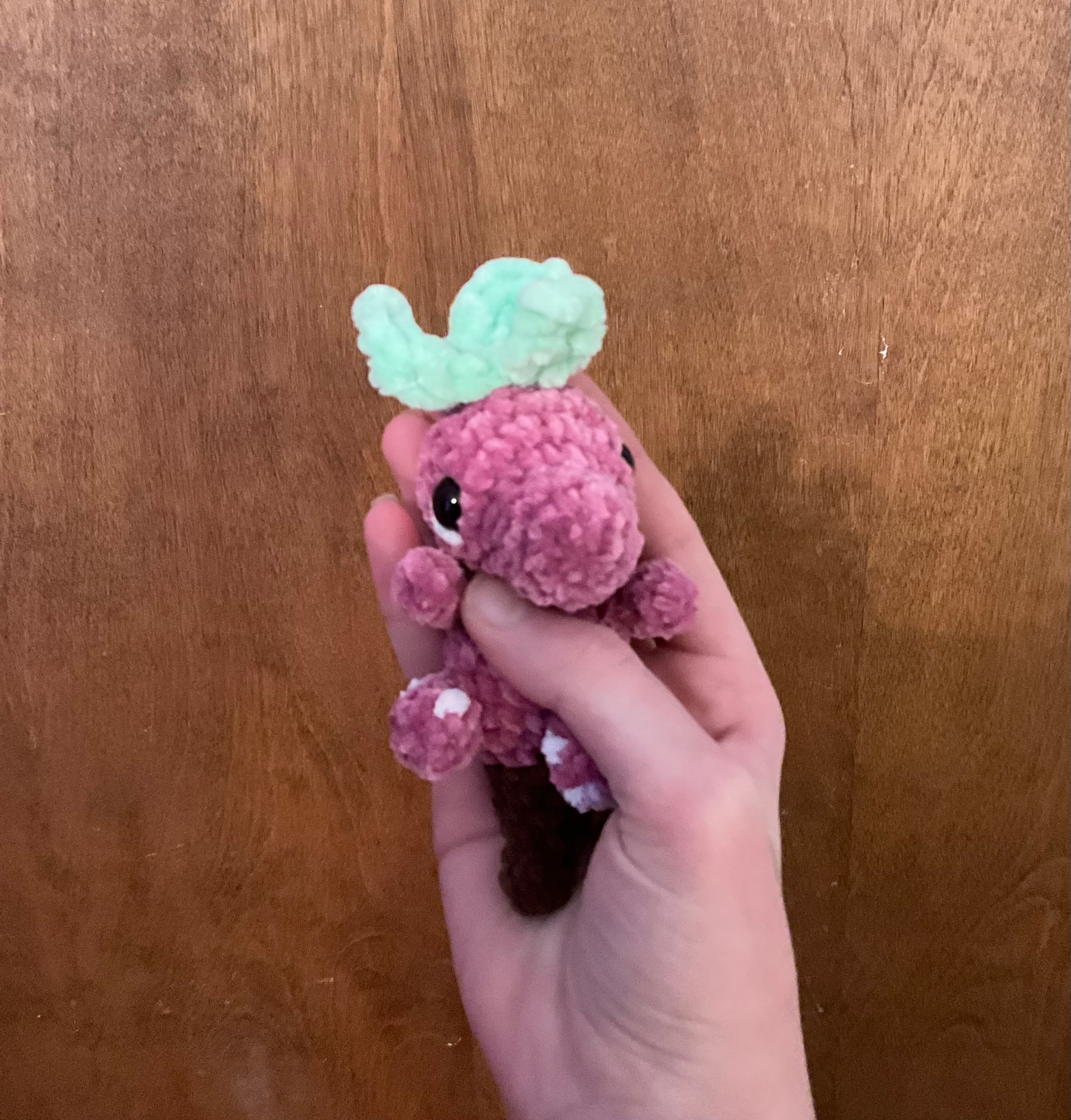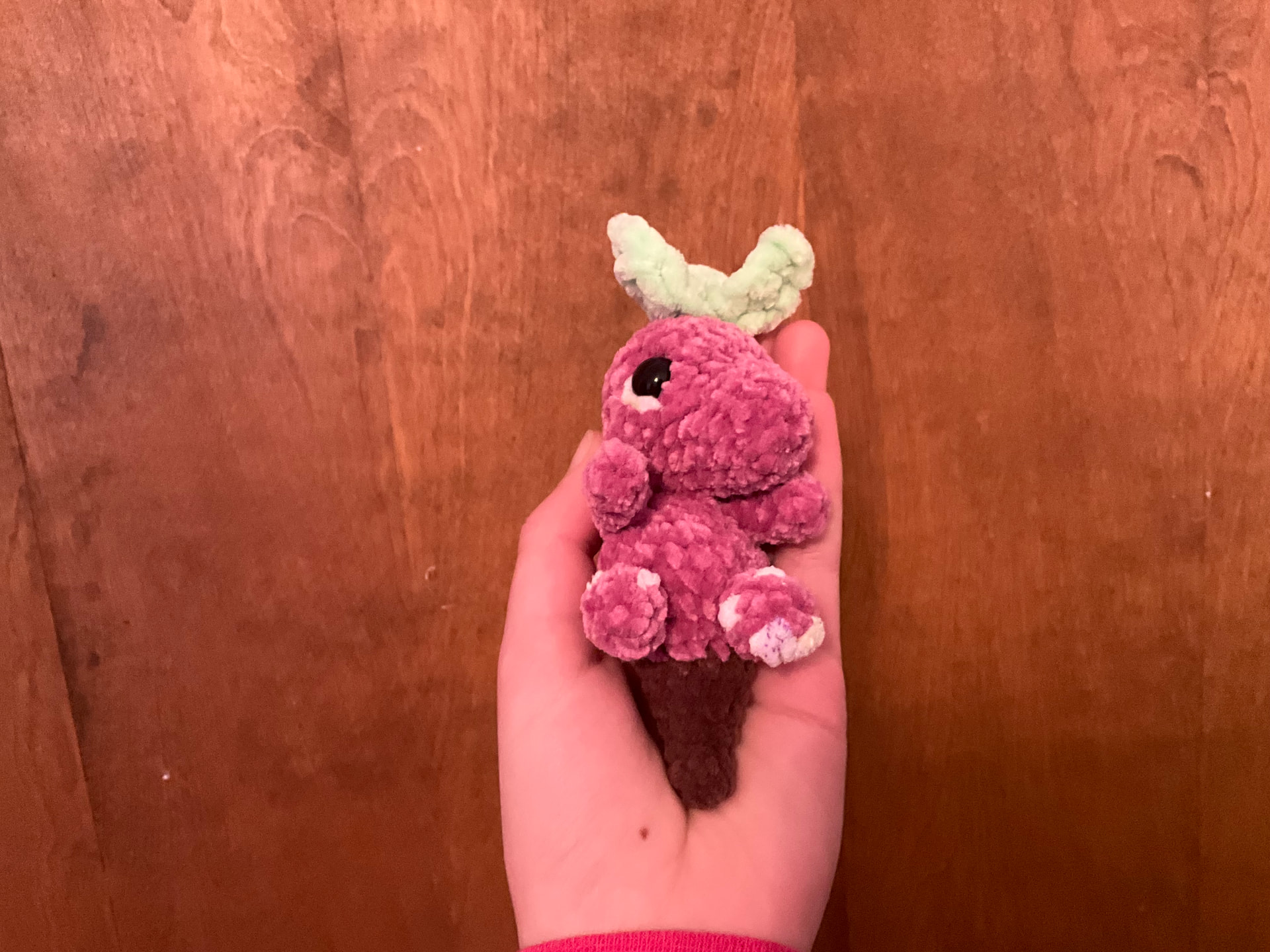 So let me explain! Instead of me working on publishing my shark+cat pattern (me procrastinating, lol) I drew a cute little strawberry Dino for me to create for Valitines day. I mostly finished the Dino today, and he’s SO cute! But when I looked at the Dino for longer, I got a sense of dasavue. I thought I had seen a pattern that looked very similar to this, but know I can’t find it. I don’t know if my memory is playing tricks on me or what…