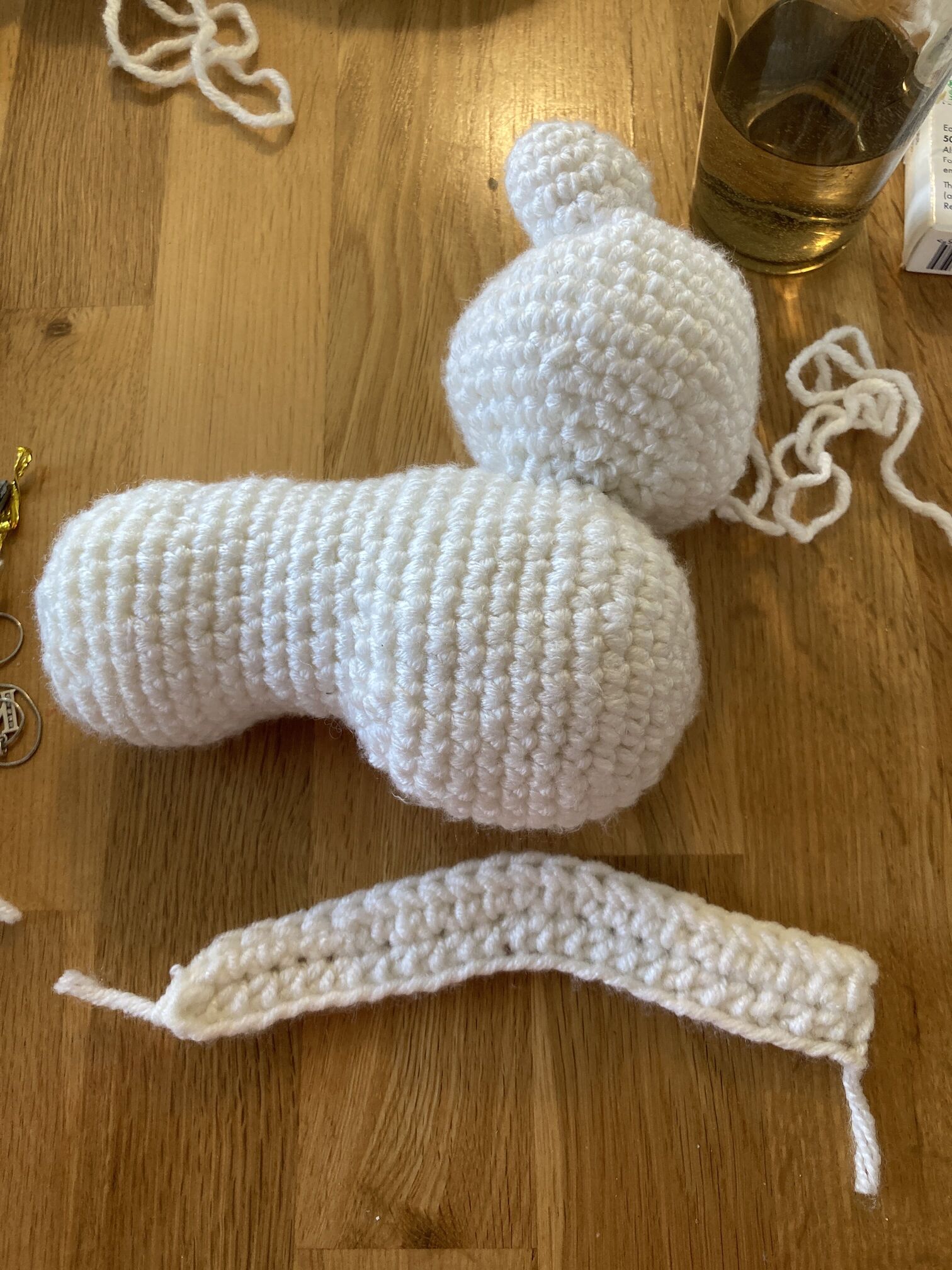 Hmm, you could visually separate the main part with crocheted stitches. And I would crochet the “arm” of the wing as a tube.
