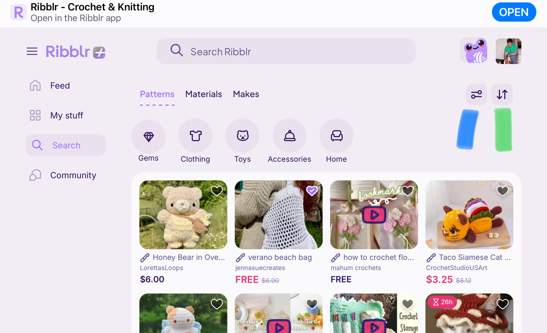 Discover thousands of crochet, knitting and sewing patterns | Ribblr?