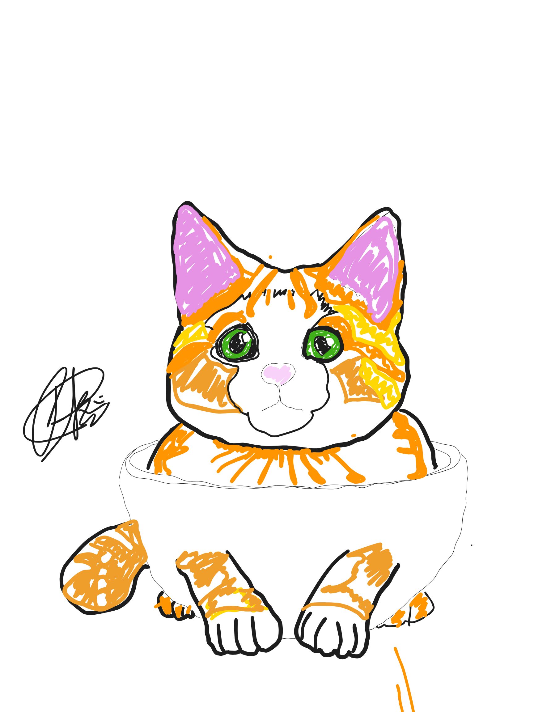 Make a cereal bowl with milk and then like make mini cat blobs to be the “cereal”