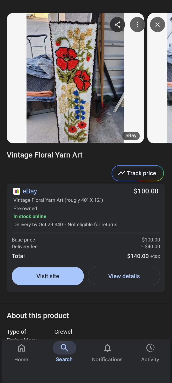 This is actually a screenshot of a live auction on eBay and what some yarn art can go for.. I hope this helps…