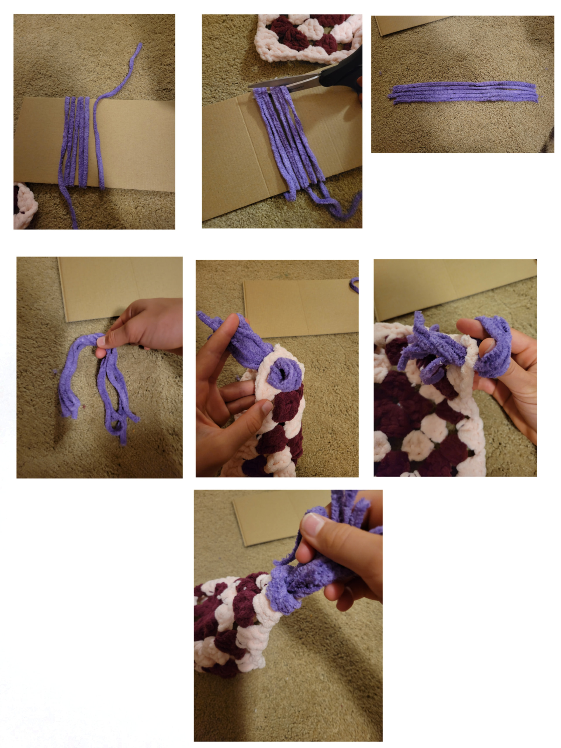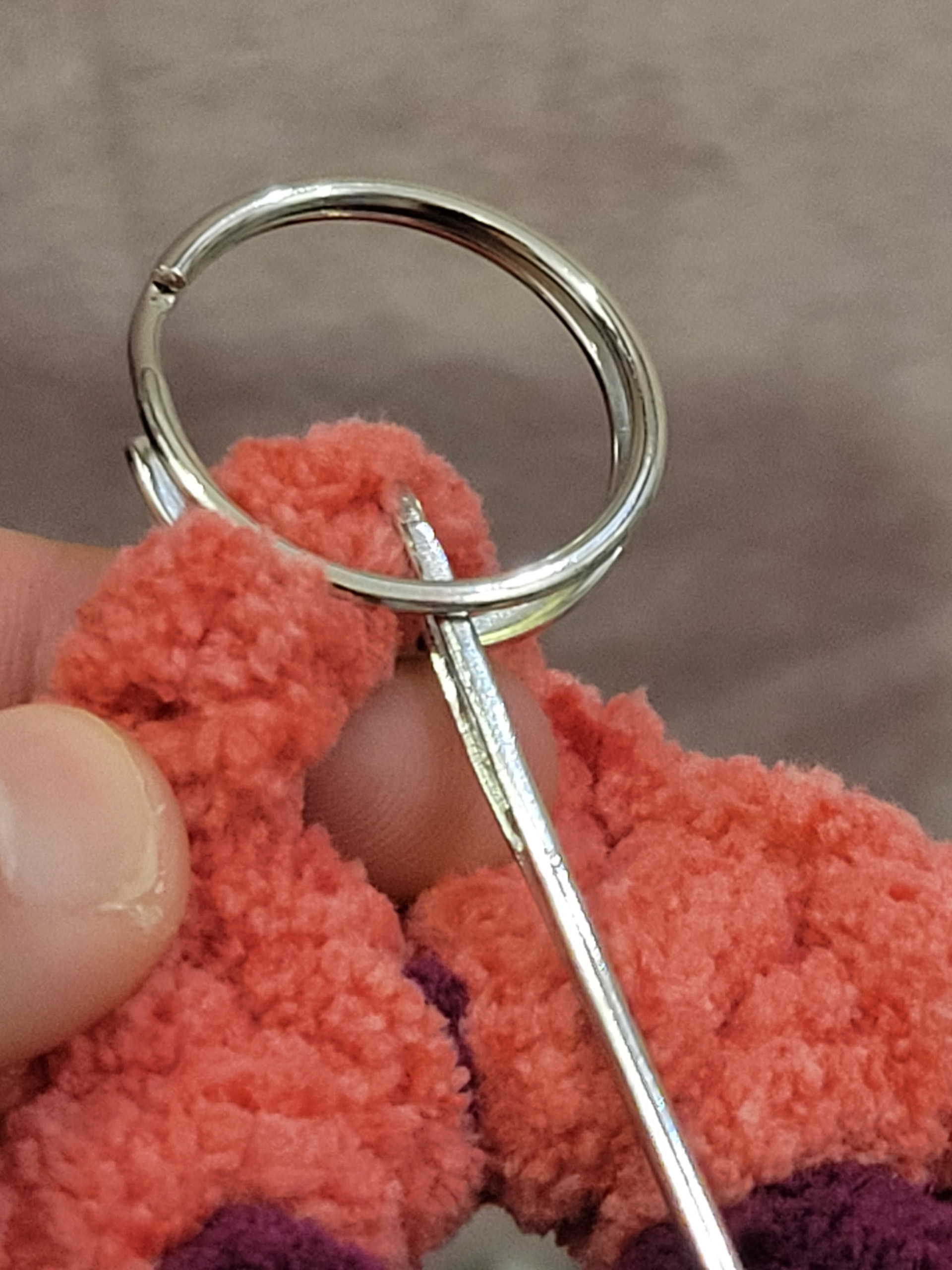 These are basically just a 1 row granny square with fringes and a Keychain ring I first make a slip knot and ch 6 then I sl st into the first stich