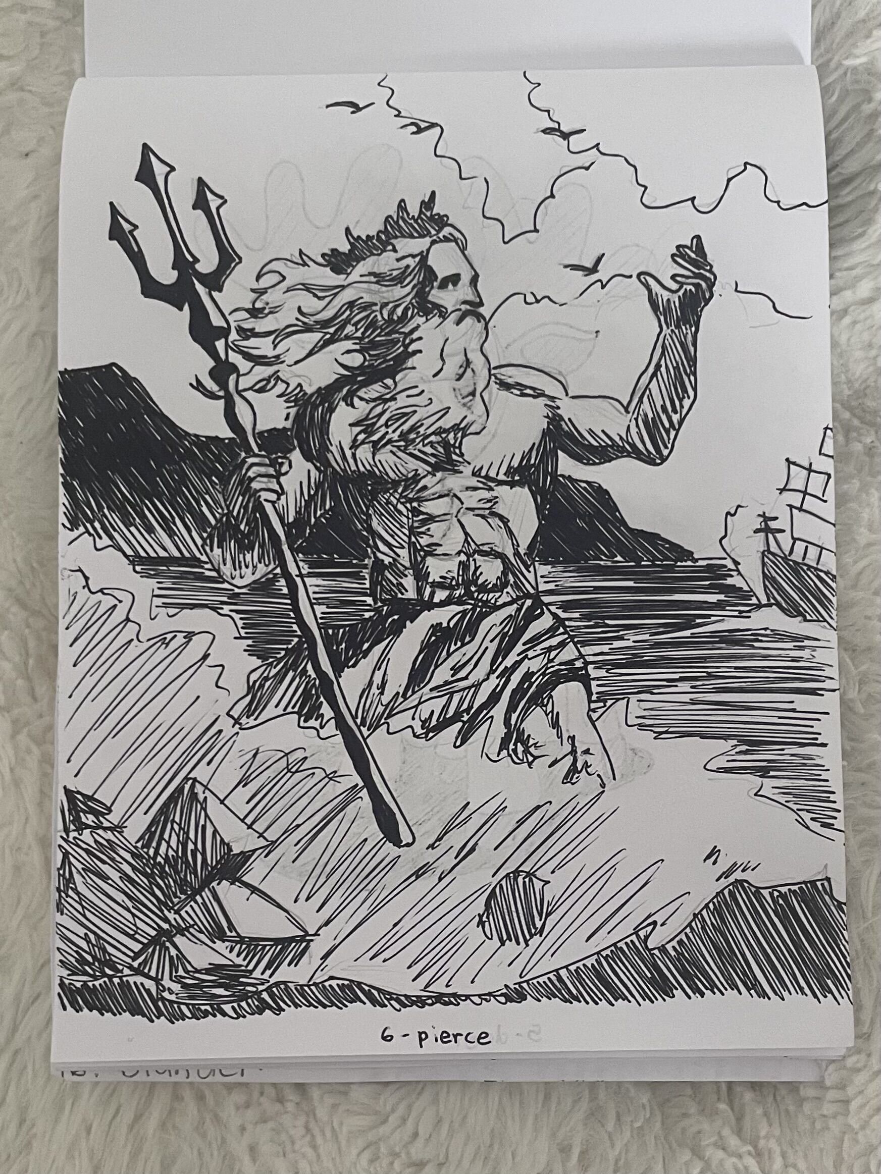For pierce today, I drew a loose sketch of Poseidon because he could āpierceā you with his tridentā¦lol. But honestly, I kind like this one.