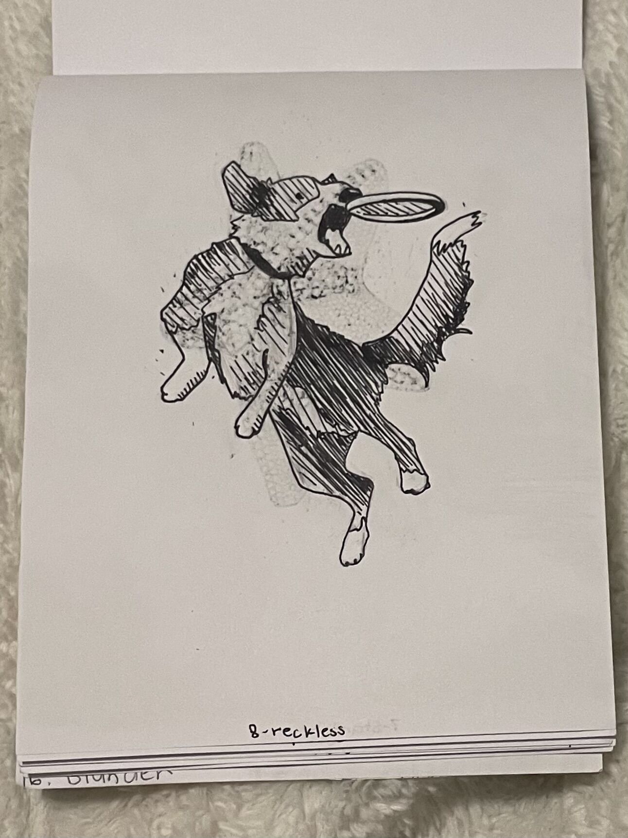 I feel like dogs can be pretty reckless sometimes, so for today I drew a dog jumping and catching a frisbee. Just ignore the ink that bled through from the other side of the page!