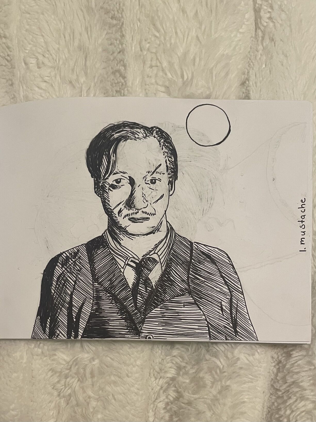 Today I drew Professor Lupin from Harry Potter because I think he has a nice mustache.