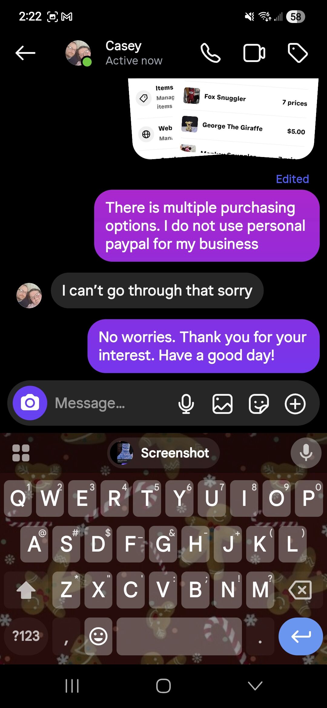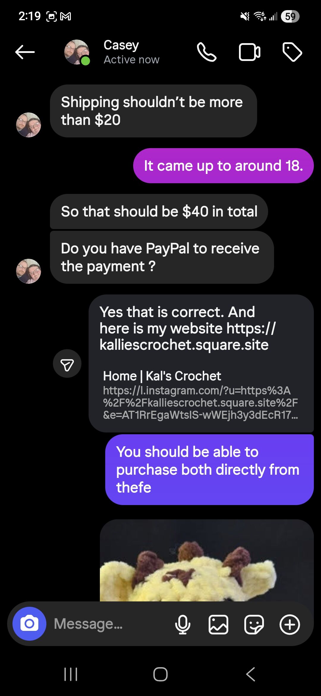 Yes definitely. I wouldn’t mind making a business PayPal for sure, Its the first time someone from the US has asked about purchasing since I just started my business a couple of months ago. they just messaged me this morning asking the prices for both plushies, and sent me their address right away, but didn’t ask about the payment process until I gave them the shipping fees. I thought it was a little weird when they replied with “I would rather get it directly from you” as my website is also directly on my page. I’m pretty sure Instagram has a purchasing option now as well.