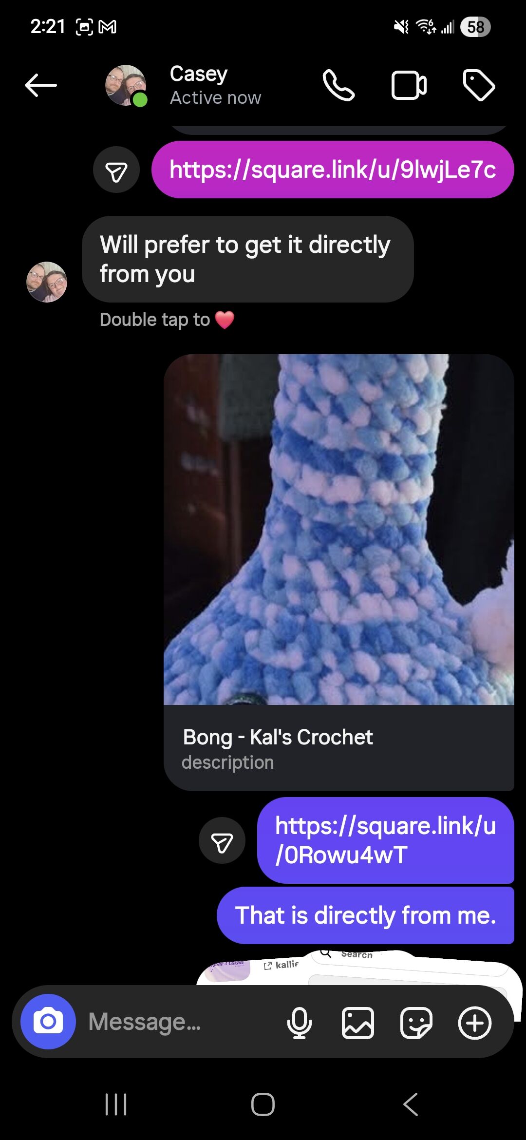 There is a known scam where people reach out on instagram offering to pay for crocheted items using PayPal. This post has more information about it: