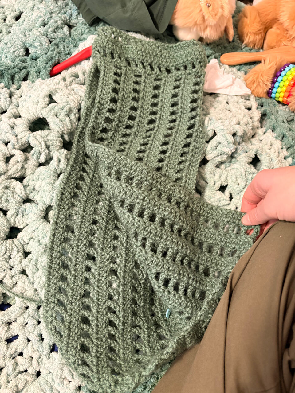 Hi hi! I started making this shrug with my Sage Loops and Threads yarn, ran out, ordered more, and got impatient. So I started another
