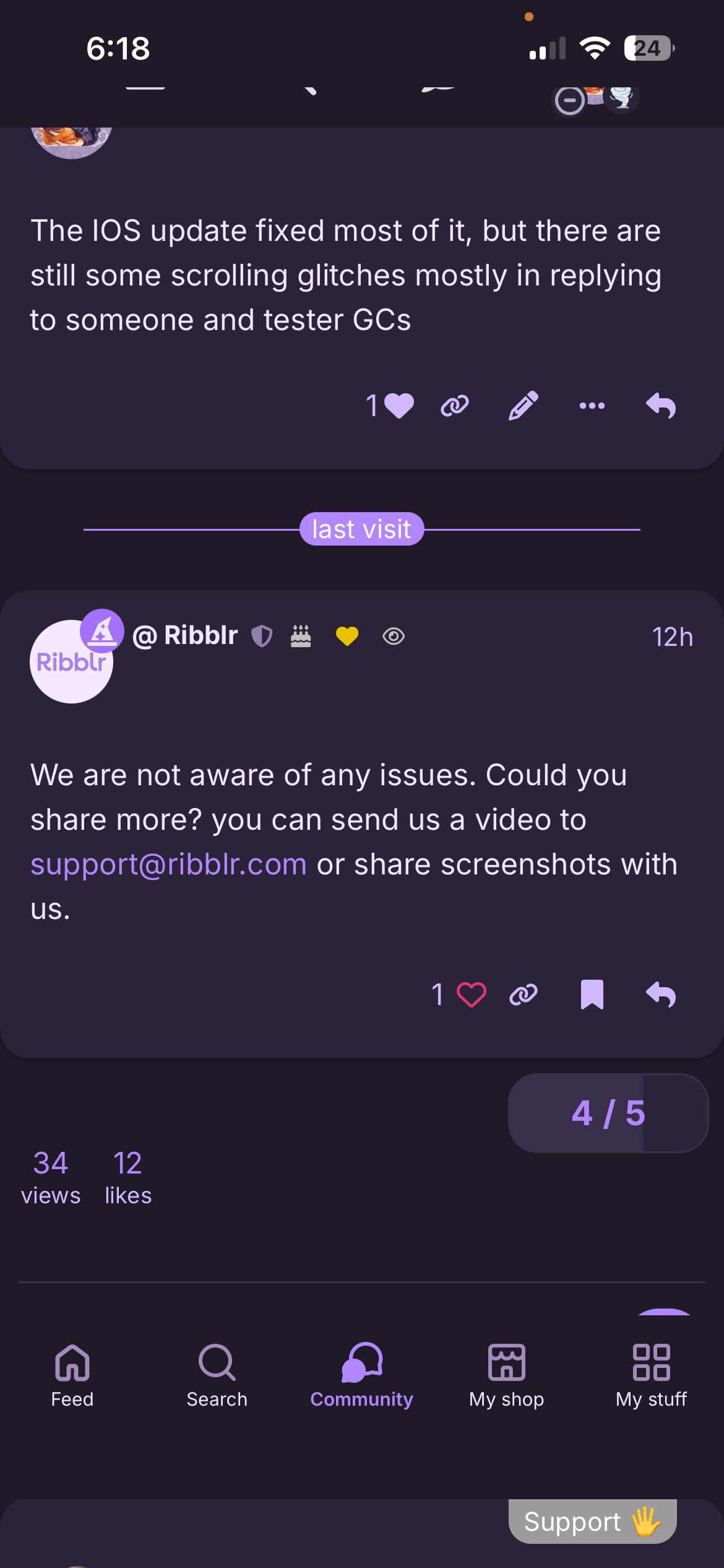 This really weird bug happens almost every time I log on to Ribblr. The lower menu bar moves up when I scroll and then glitches the whole screen out so that I have to restart the app. And sometimes it just happens over and over until I give up for a while.