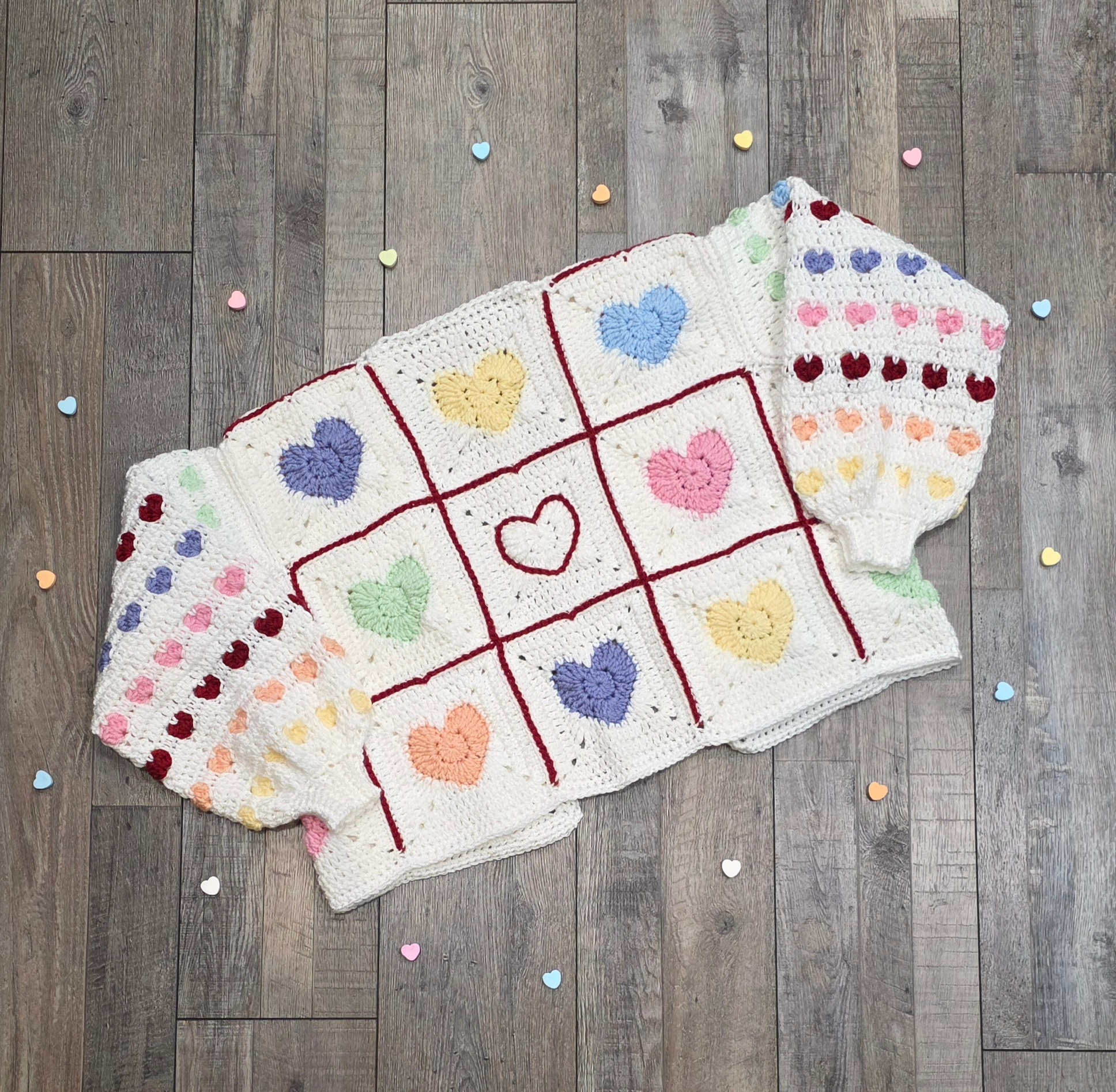 A day late but never short on love for the craft community! Check out the Sweet Hearts Cardigan pattern: