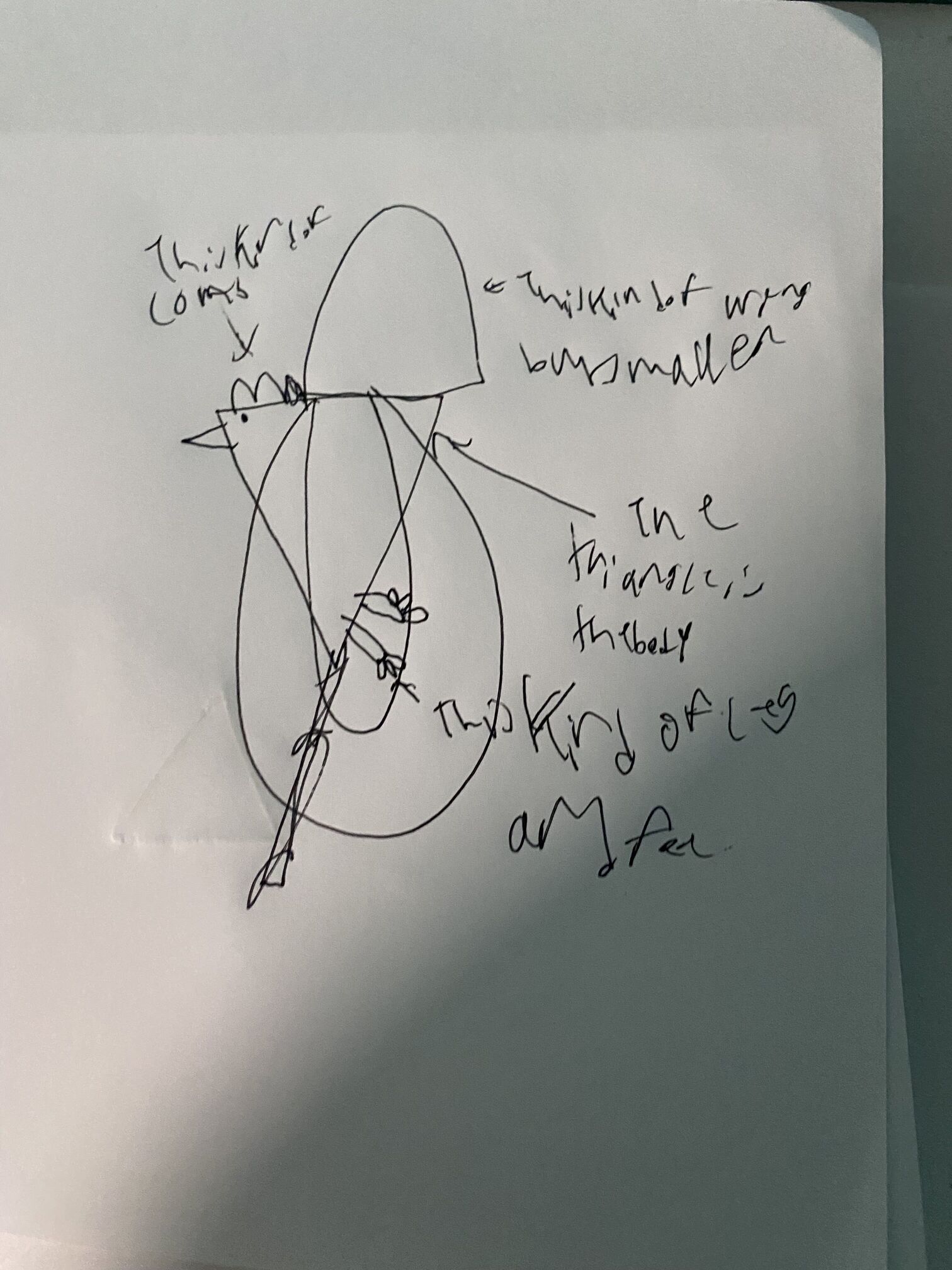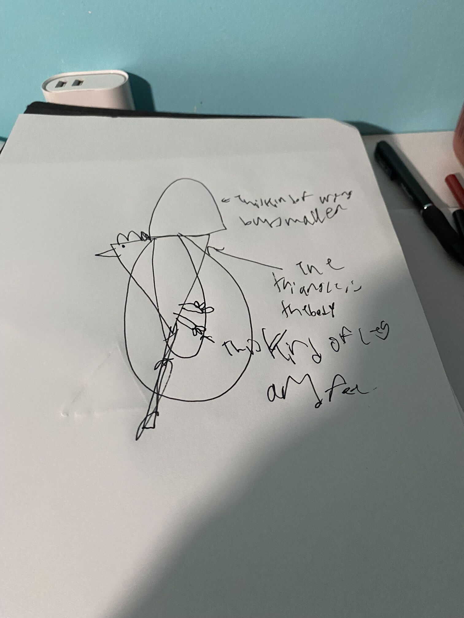 If you can’t read my handwriting it says this kind of wing but smaller , the triangle is the body, this kind of comb , and this kind of legs and feet
