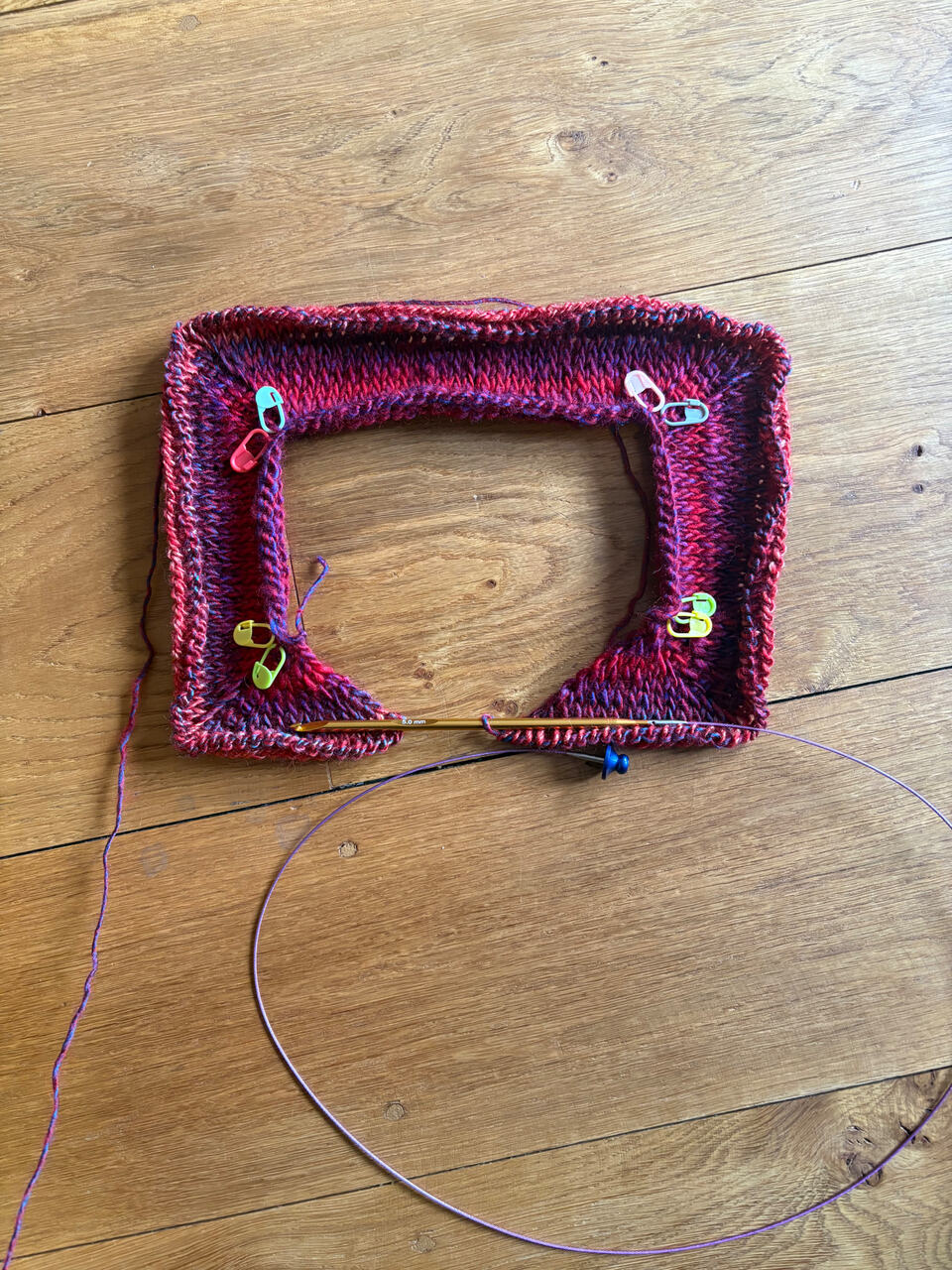 I have three WIP, a plaid for which I’m having trouble to find the yarn, a vest that I had to start over yesterday, because I made it a bit too small, and a crochet holder that I am having trouble sewing straight