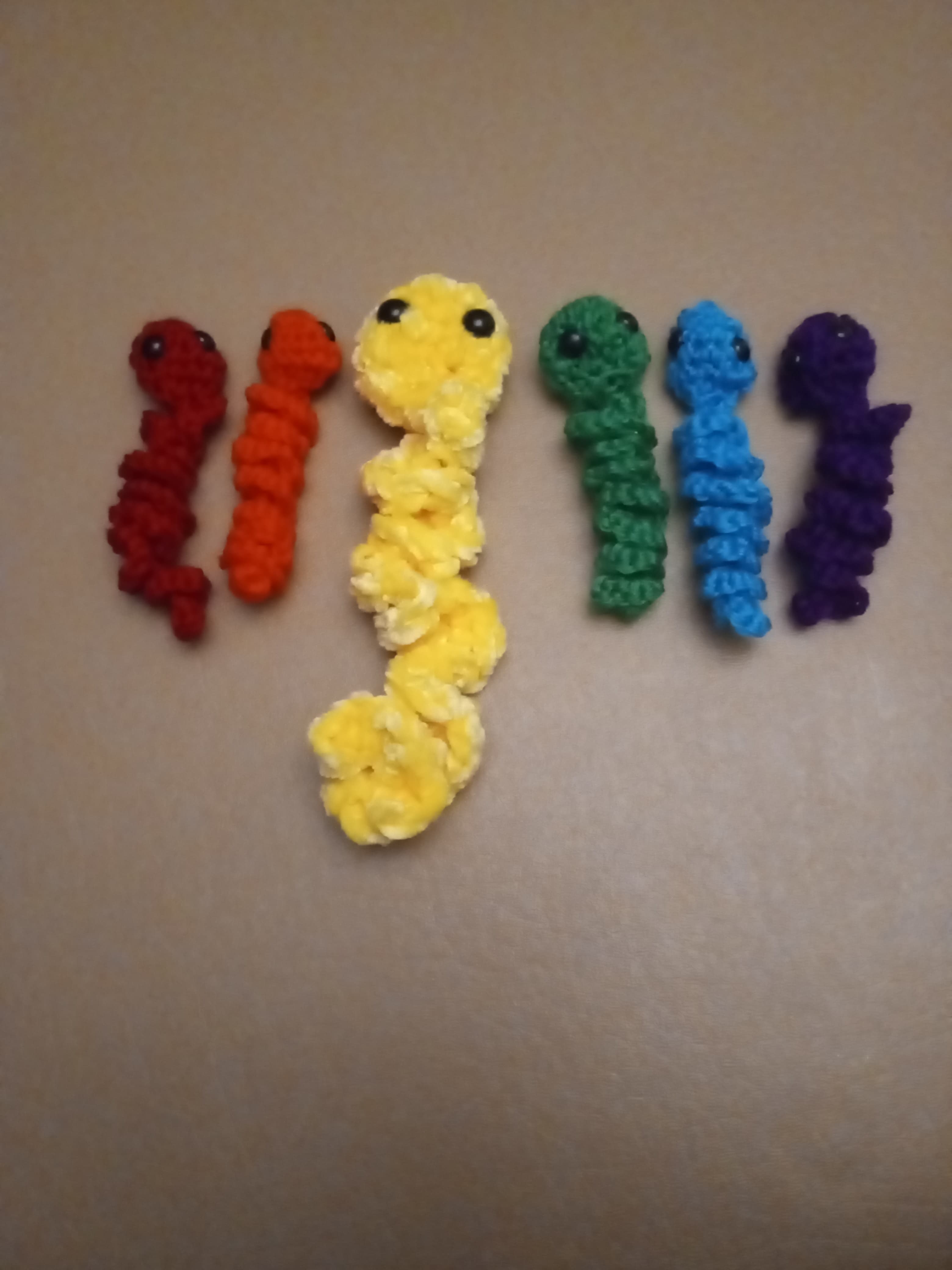 I made six worms each one the colour of the rainbow! Iโm so proud of myself it took me an hour and an half. Happy Halloween!