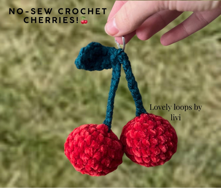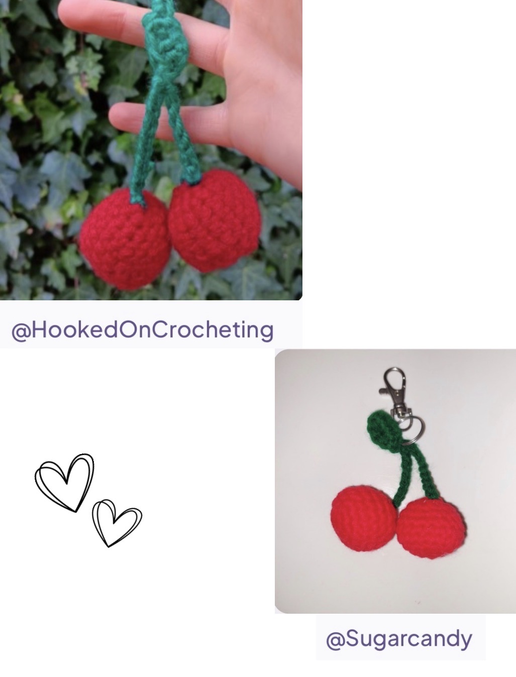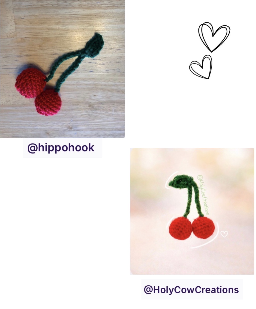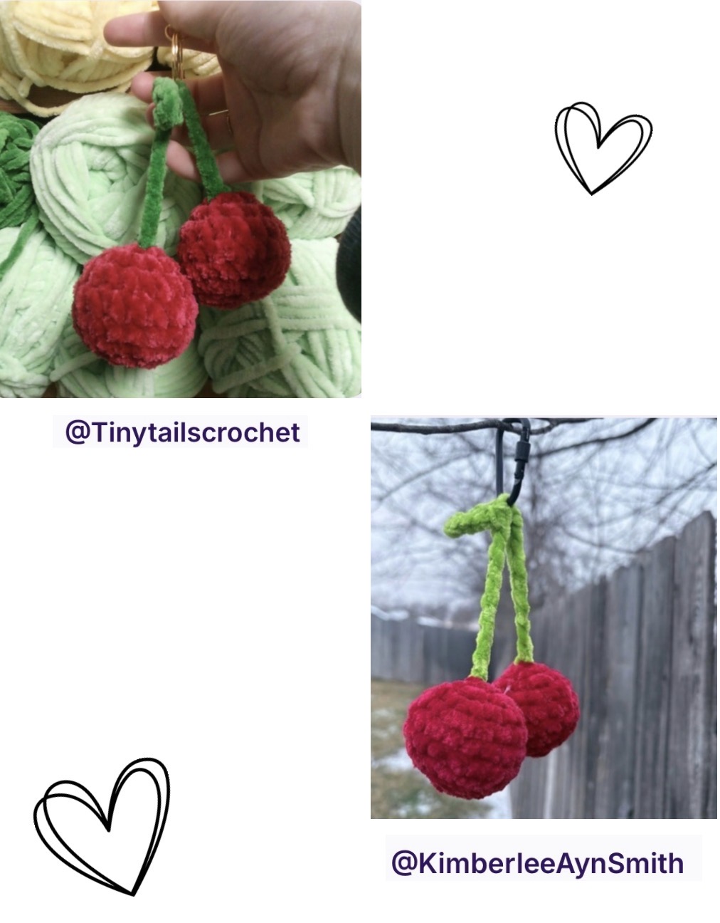 and I never got around to posting it. But here it is! It’s a super quick completely no-sew cherries pattern! It’s great for last minute market prep or presents! You can also make it a keychain! Here’s the pattern link-