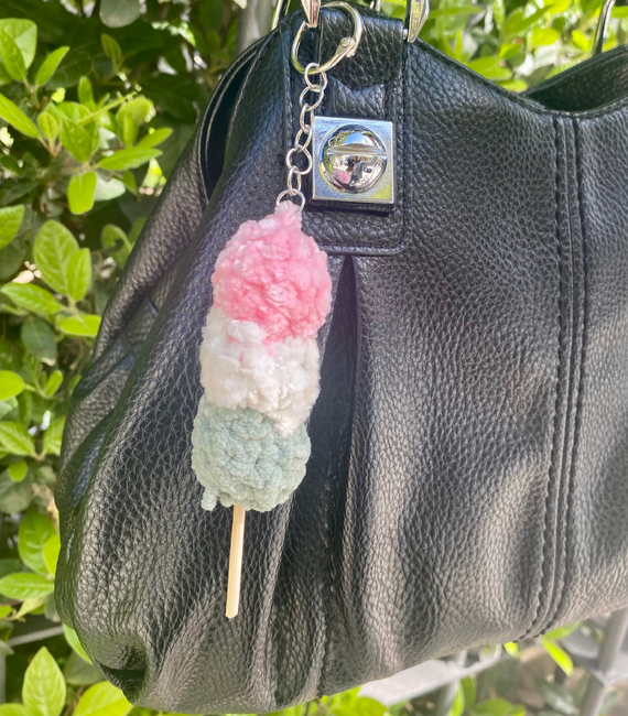 Hi! i’m releasing my first pattern in a long time, the dango keychain! Dango is a japanese dessert, the three colour type in the patten is called hanami dango.