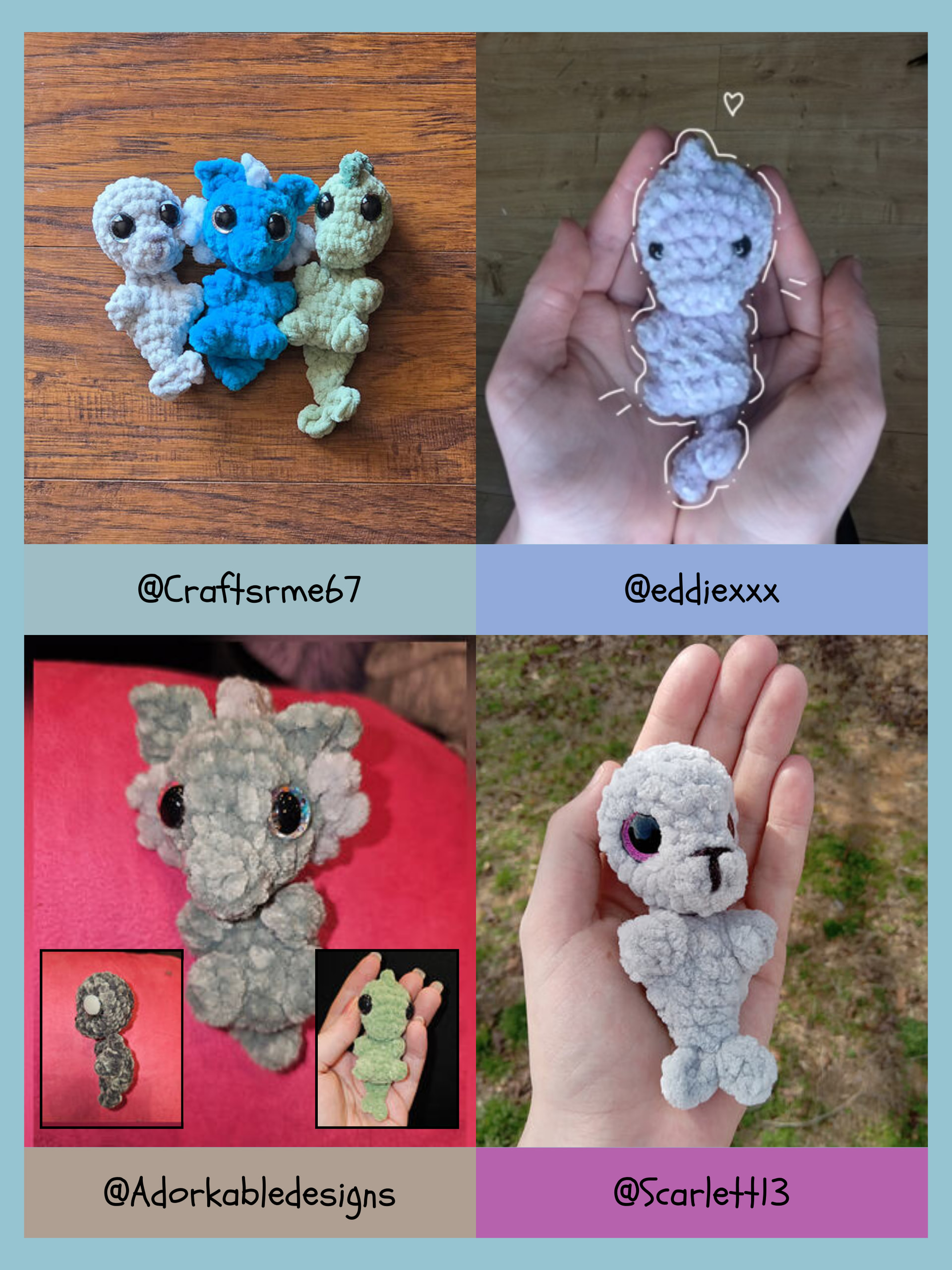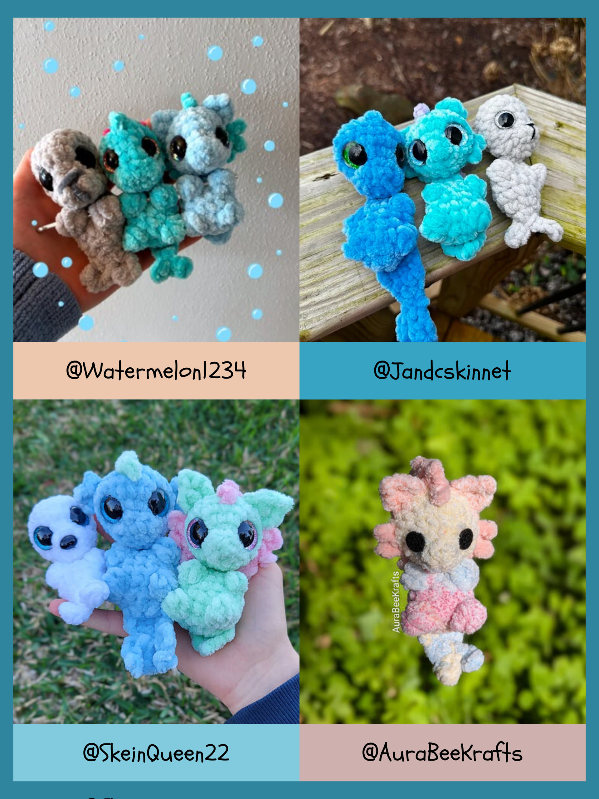 The pattern released today and will be FREE for 24 hours on Ribblr! This set includes three water creatures - a nixie, selkie, and sea monster! ![]()