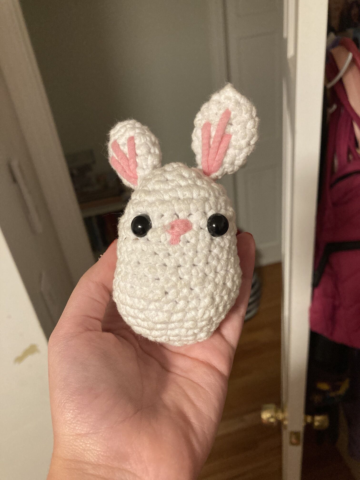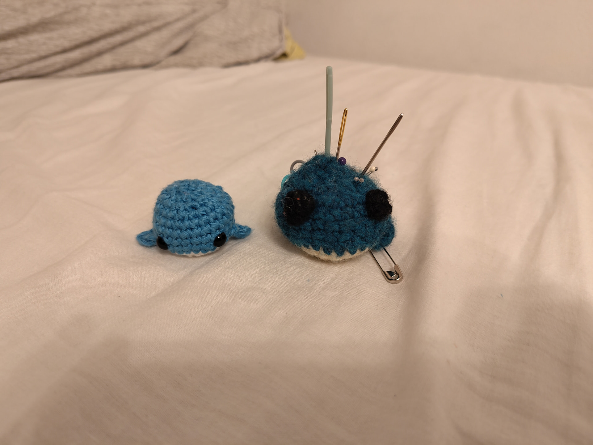 itās basically a free-handed deformed pill shaped penguin, I didnāt know how to decrease, so I just skipped stitches. but of course I was proud of it, and happy I made a plushie all by myself