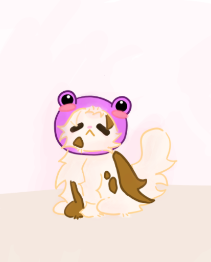 I drew a cat wearing a ribbot hat!!!