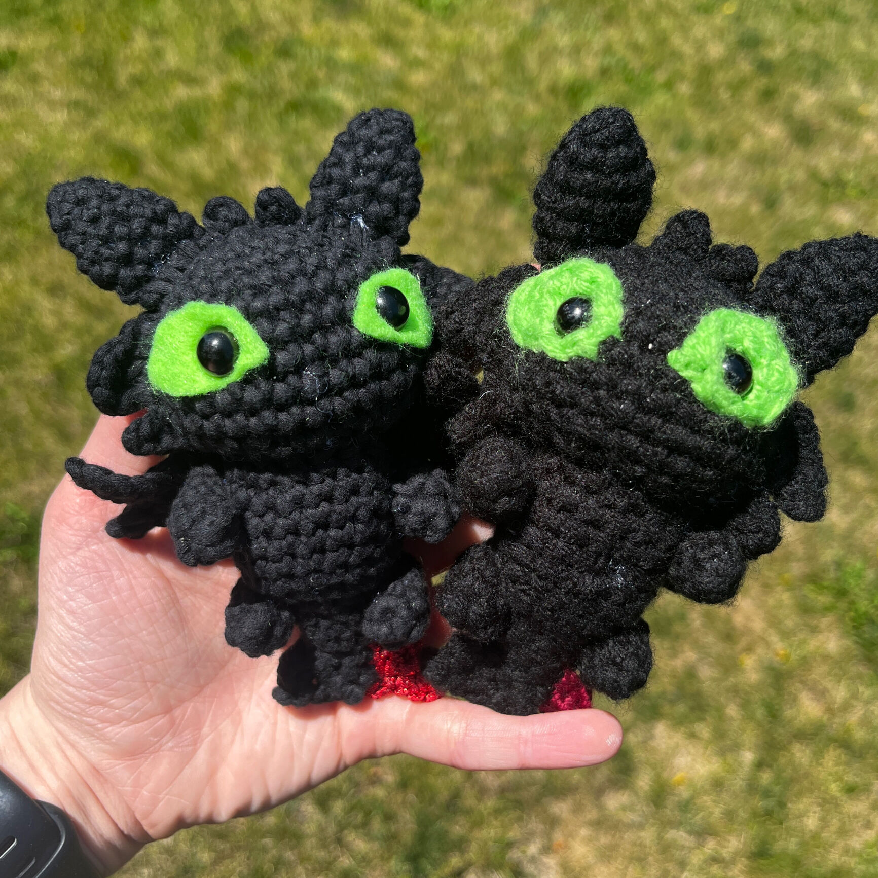 My most recent makes have been these cute Toothless’ I turned into bag pendants! I was pattern testing for someone on Reddit and thought they’d make cute pendants! (The clips are attached to the backs of their heads, it was just easier to hold them with the clips sort of hidden behind them )