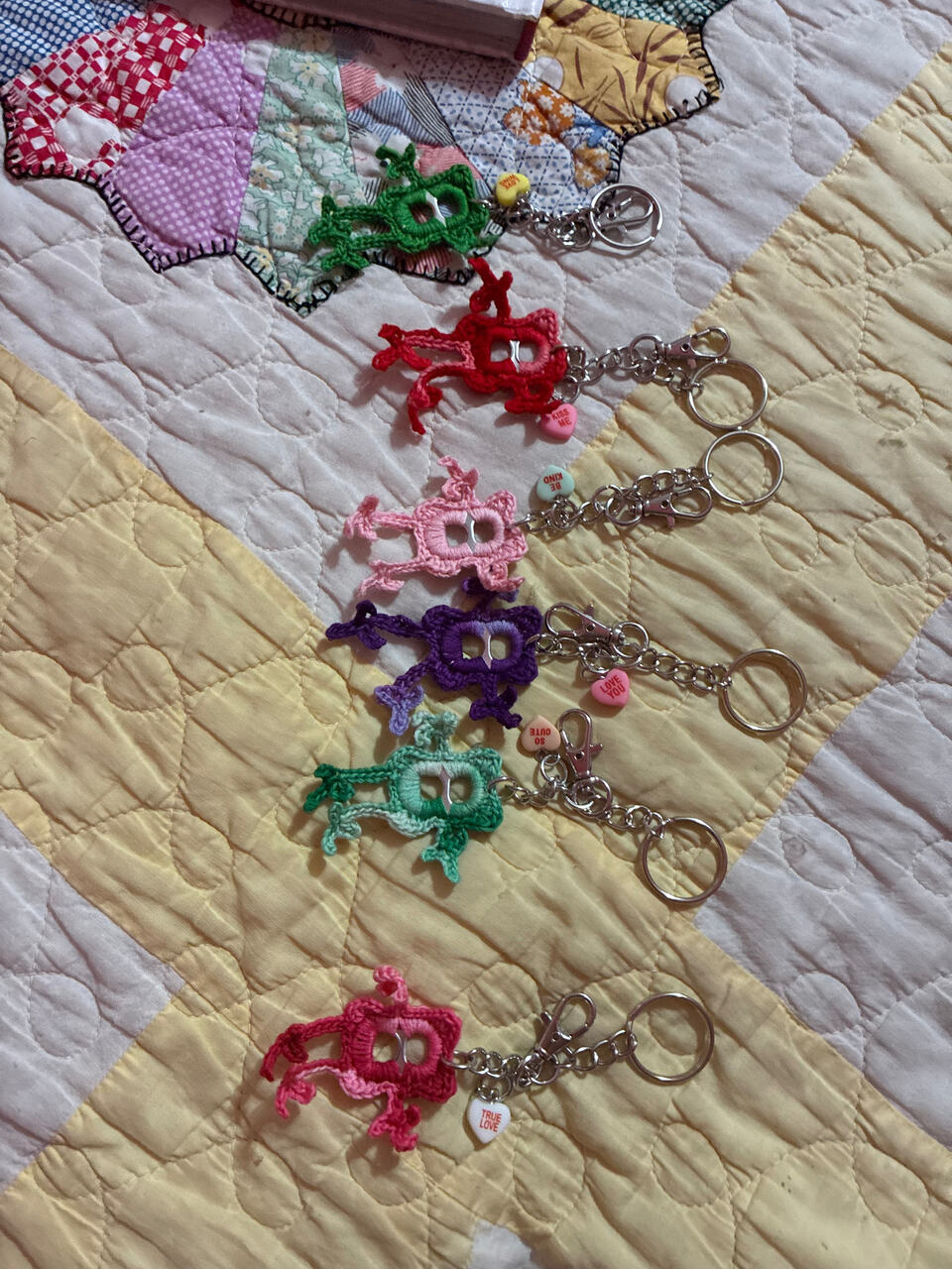 Here are a few things Iāve recently made (itās not a lot) but I made a bunch of the frog keychains for my friends for Valentineās Day and here they are,