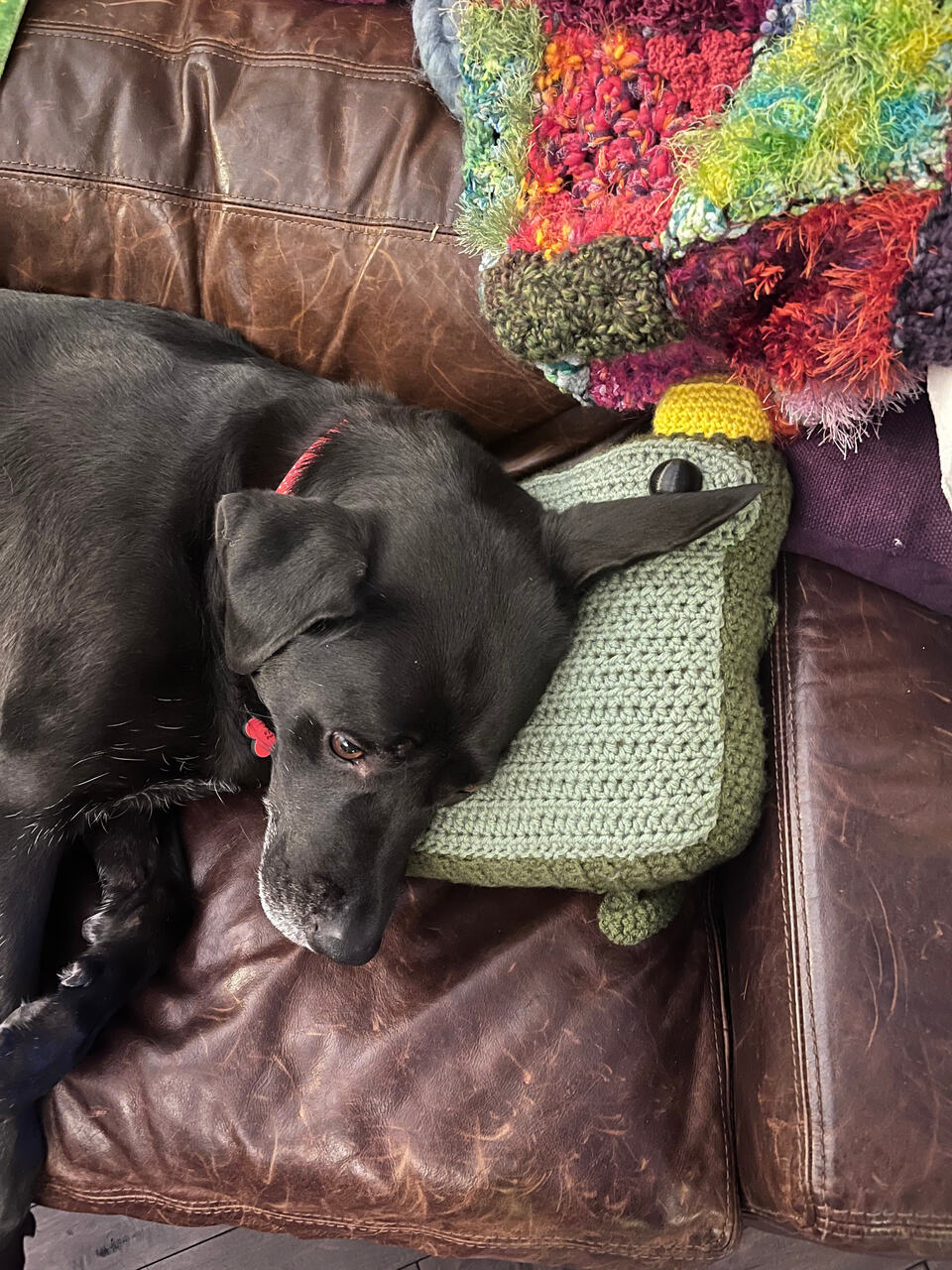 My JUMBO Toasty Frogger, without a doubt. It’s incredibly squishy and huggable, and it somehow became one of my dog’s favorite pillows. It’s currently in testing and will be my first paid pattern, which makes it even more special.