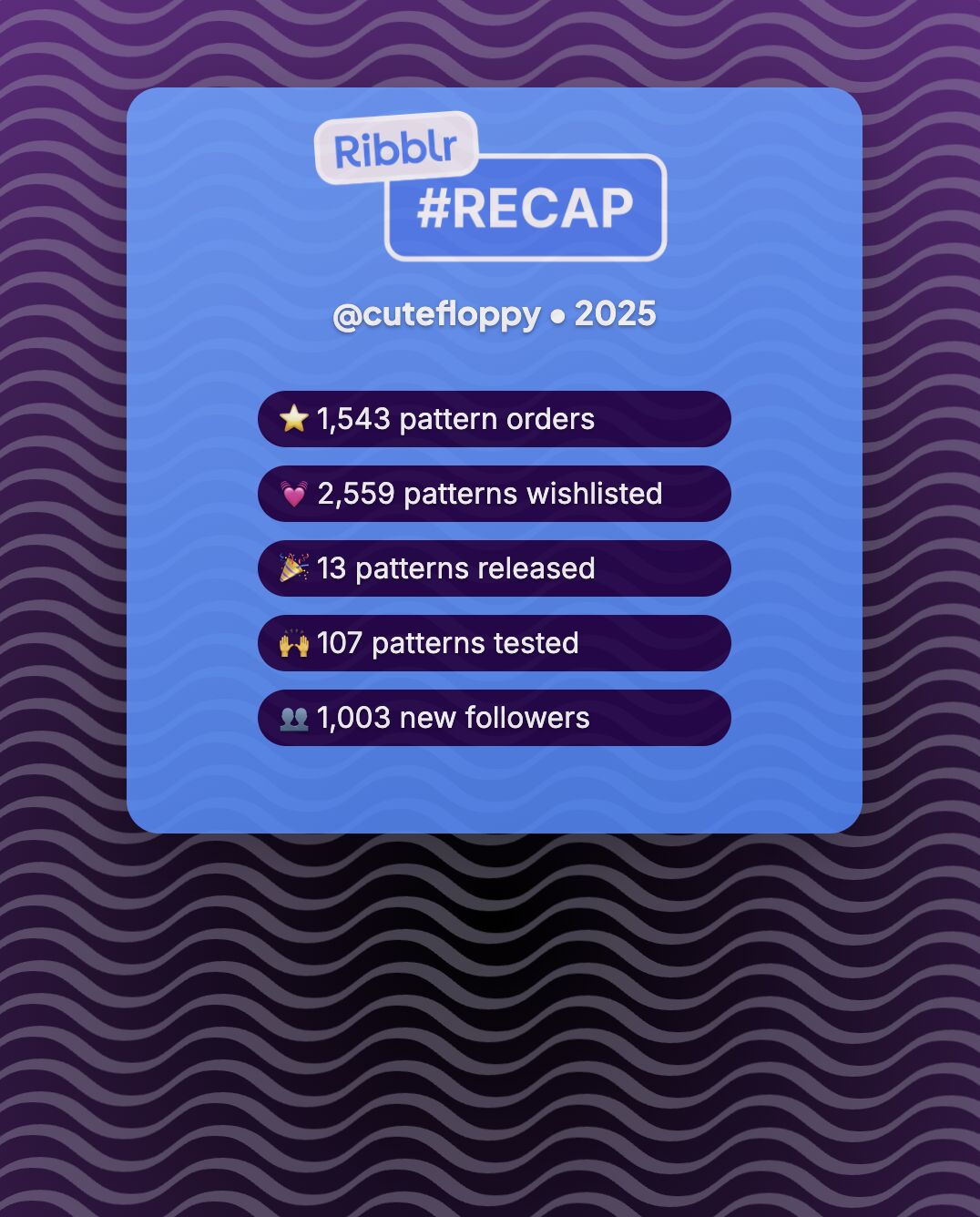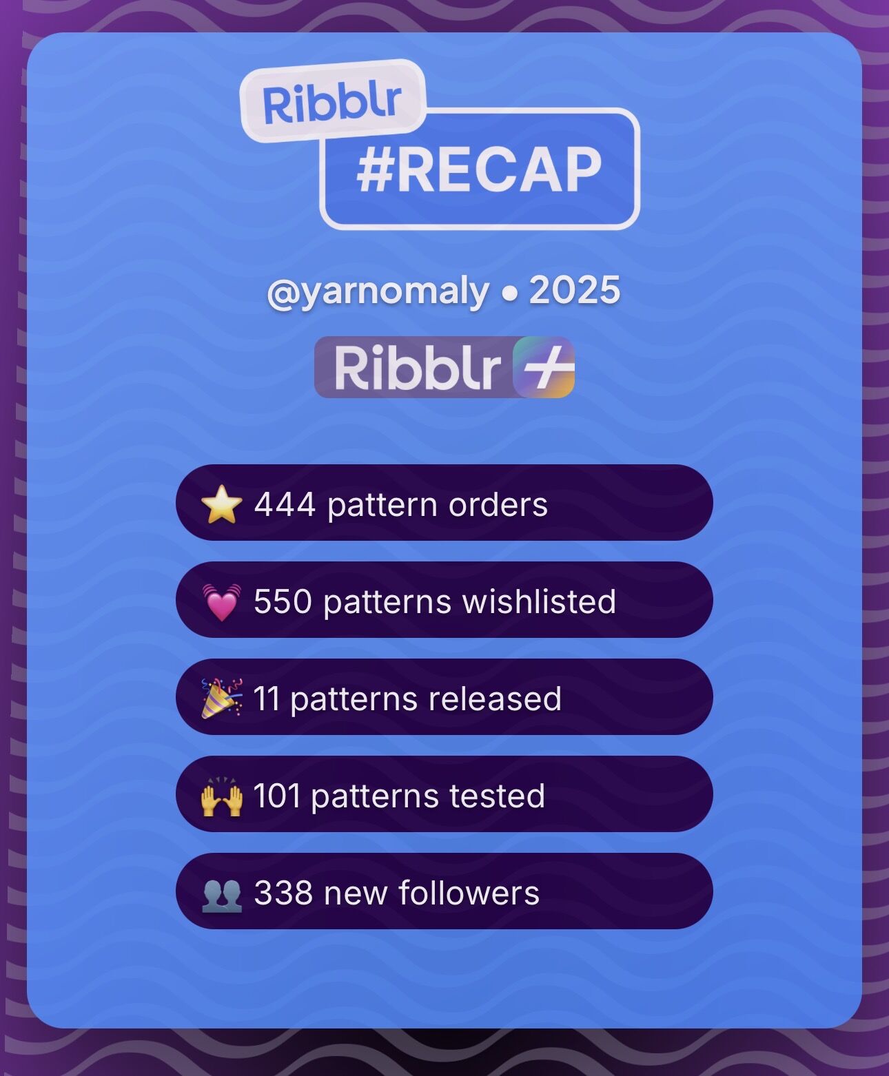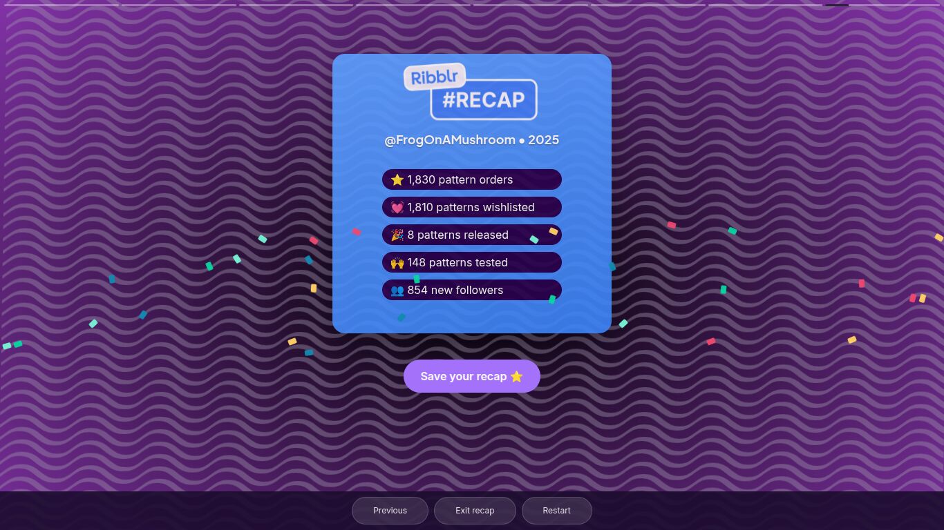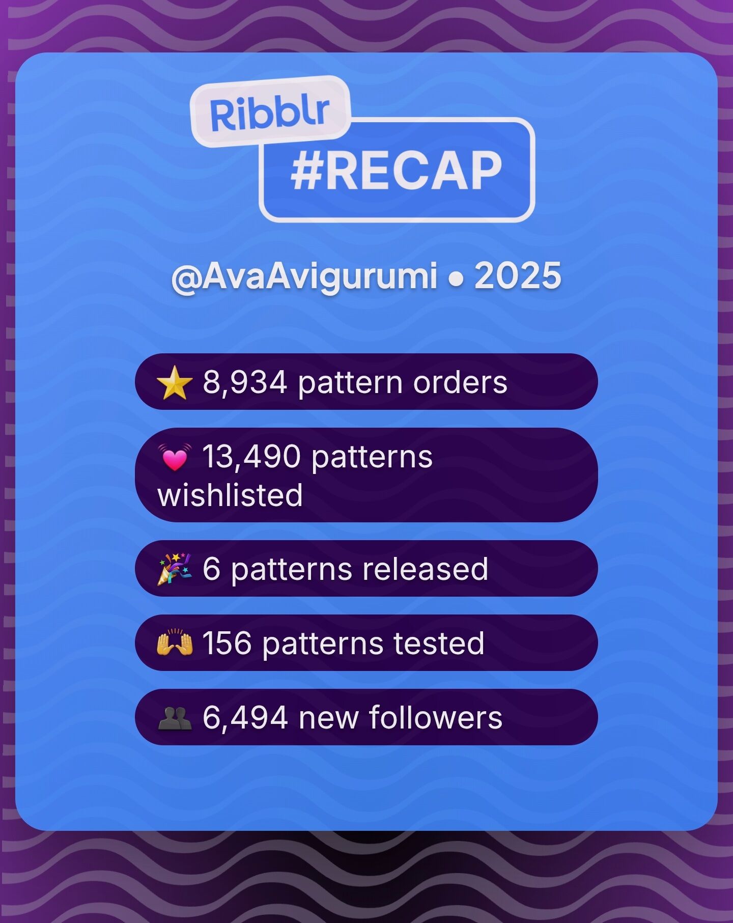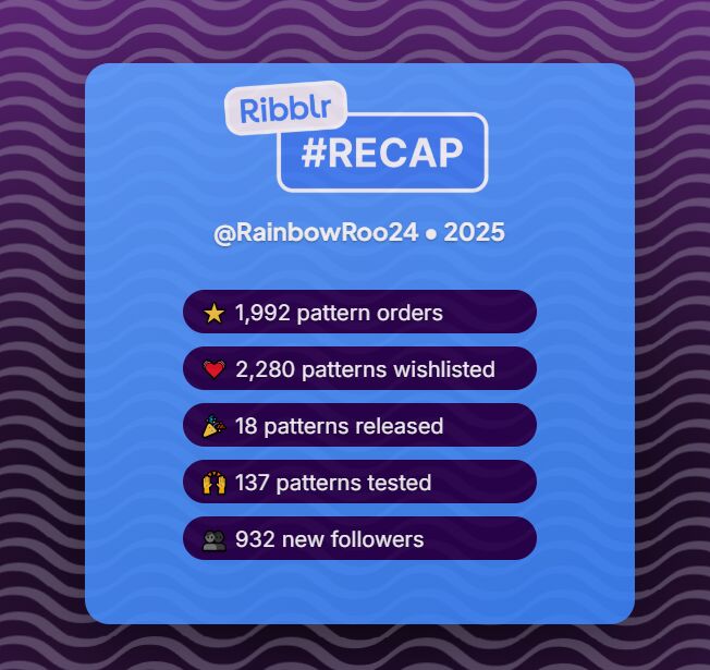 Here’s my recap!!! This year has been an amazing first year on Ribblr and I can’t believe how much I have grown as a crocheter ever since I joined - from making my first pattern, testing my first pattern, and selling a pattern for the first time. Thank you so much to the Ribblr team for creating such an amazing community of crafters and making all of this possible ![]()