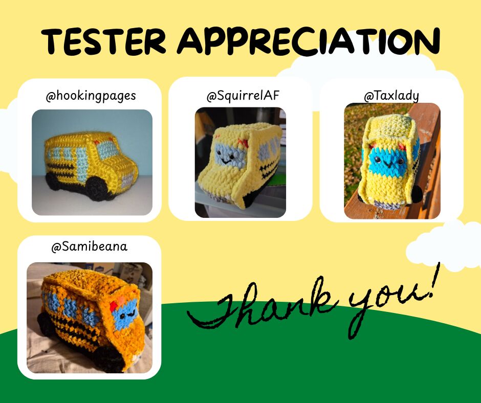 A HUGE thank-you to my amazing testers β your feedback, photos, and support helped drive this pattern to its next stopβ¦home. I appreciate each of you so much!