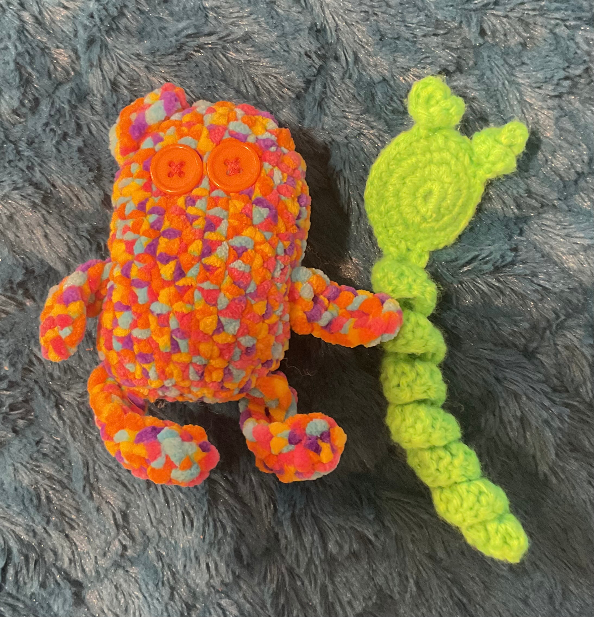 Here’s a goofy one I finished a few days ago. I couldn’t finish it for about a year and a half as I couldn’t find the other orange button. the other is a loopy worm for free in Ribblr.