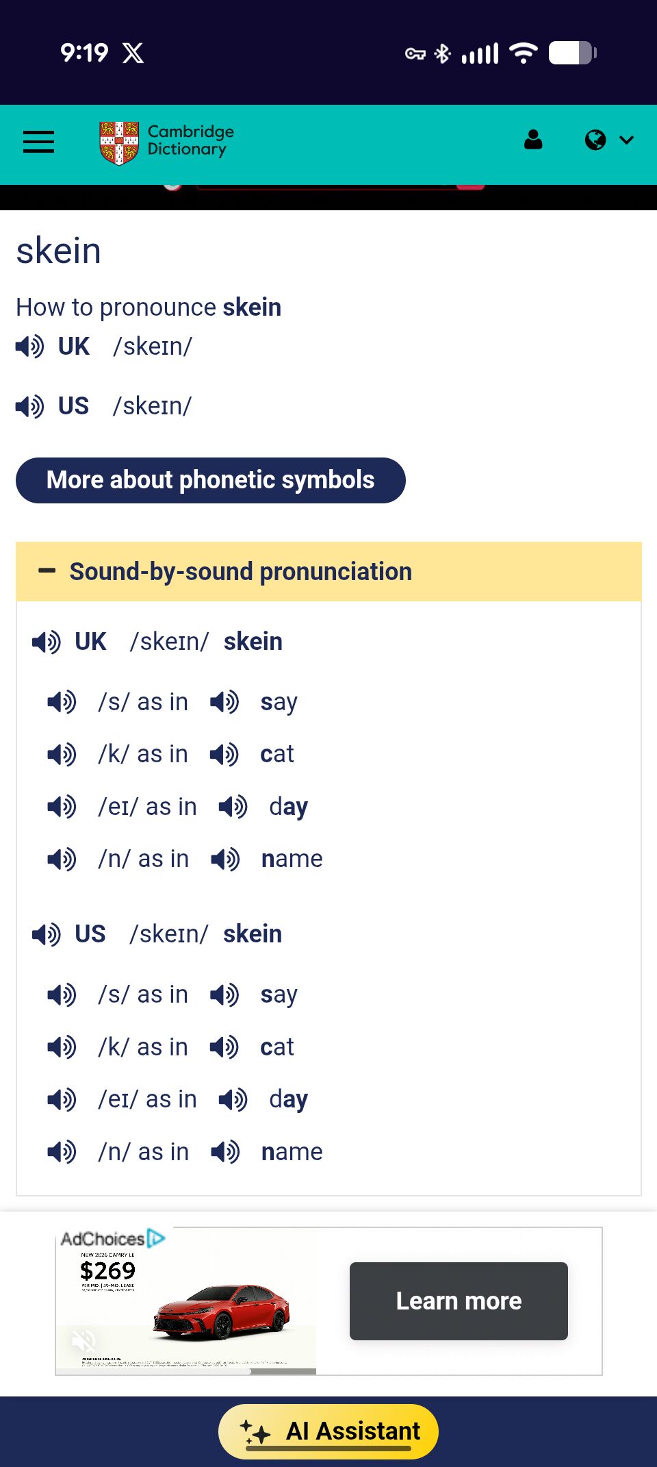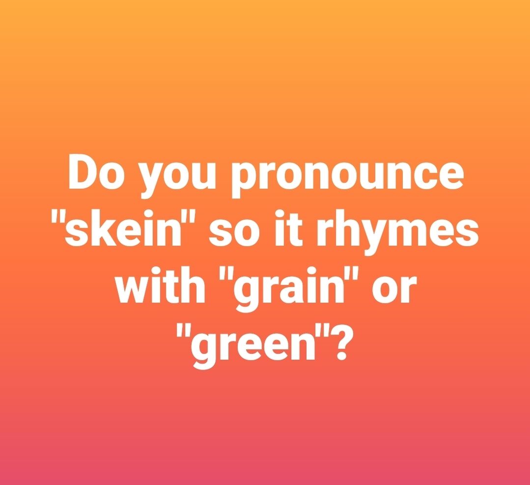 Oh that skein, yeah I pronounce it like either one, thanks for the help!