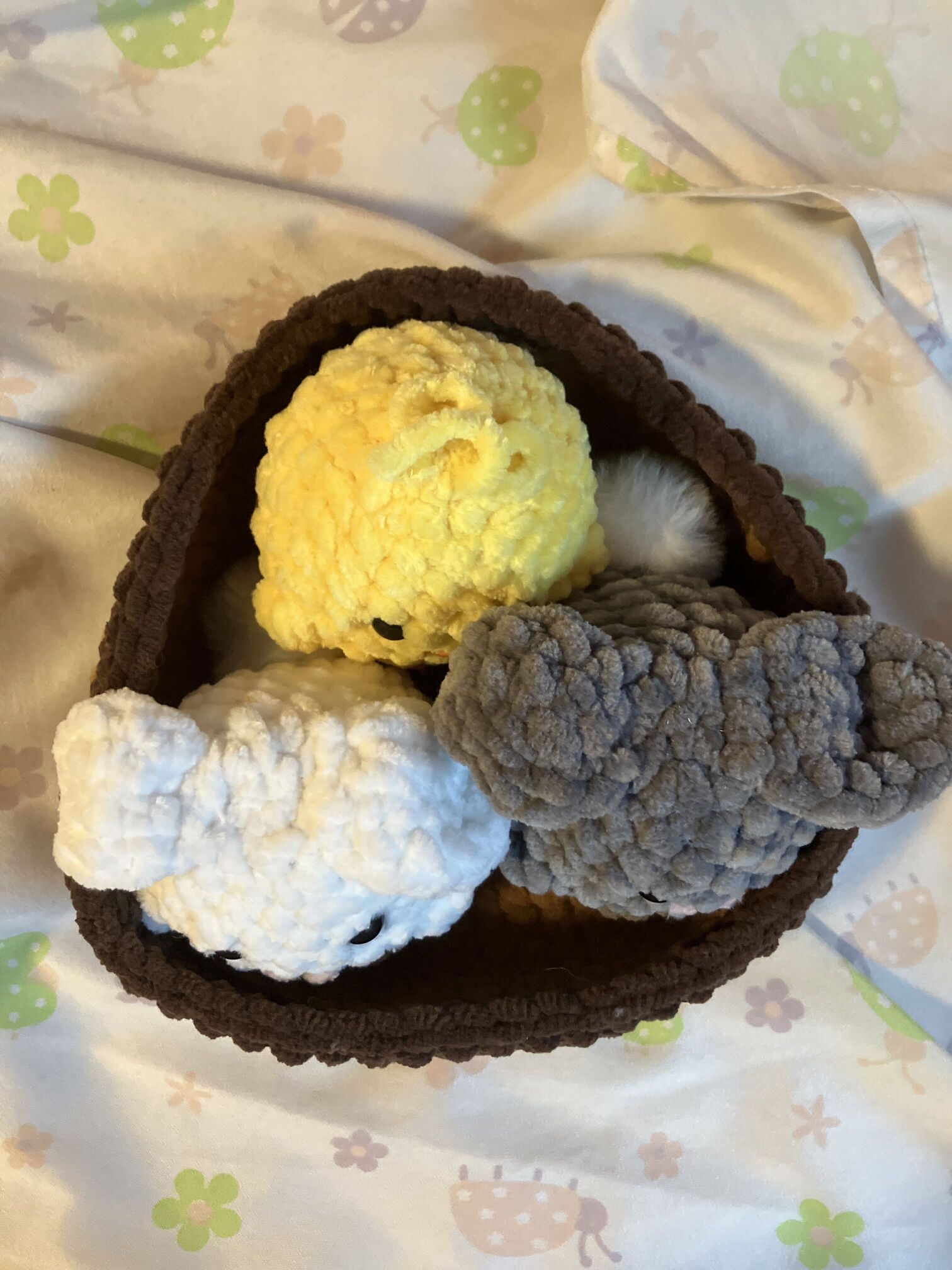 So… I have a market in March, and this one will be my second market in my lifetime. So I will be making spring themed, I will be making eggs(I don’t have many I will make) pattern by @AngelaJohnson, chick I will make like 20 or 30, and bunnies the bunnies will kill because I have to make 40. The pattern for the bunnies and chicks are by @PlushiCo. So yeah that’s is what I will be doing for the next few months. (I just hope I will not burn out myself