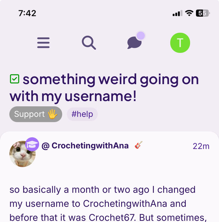 can anyone tell me what username and profile picture they see on this post because maybe it is CrochetingwithAna (my wanted username) even though I see it as something else?
