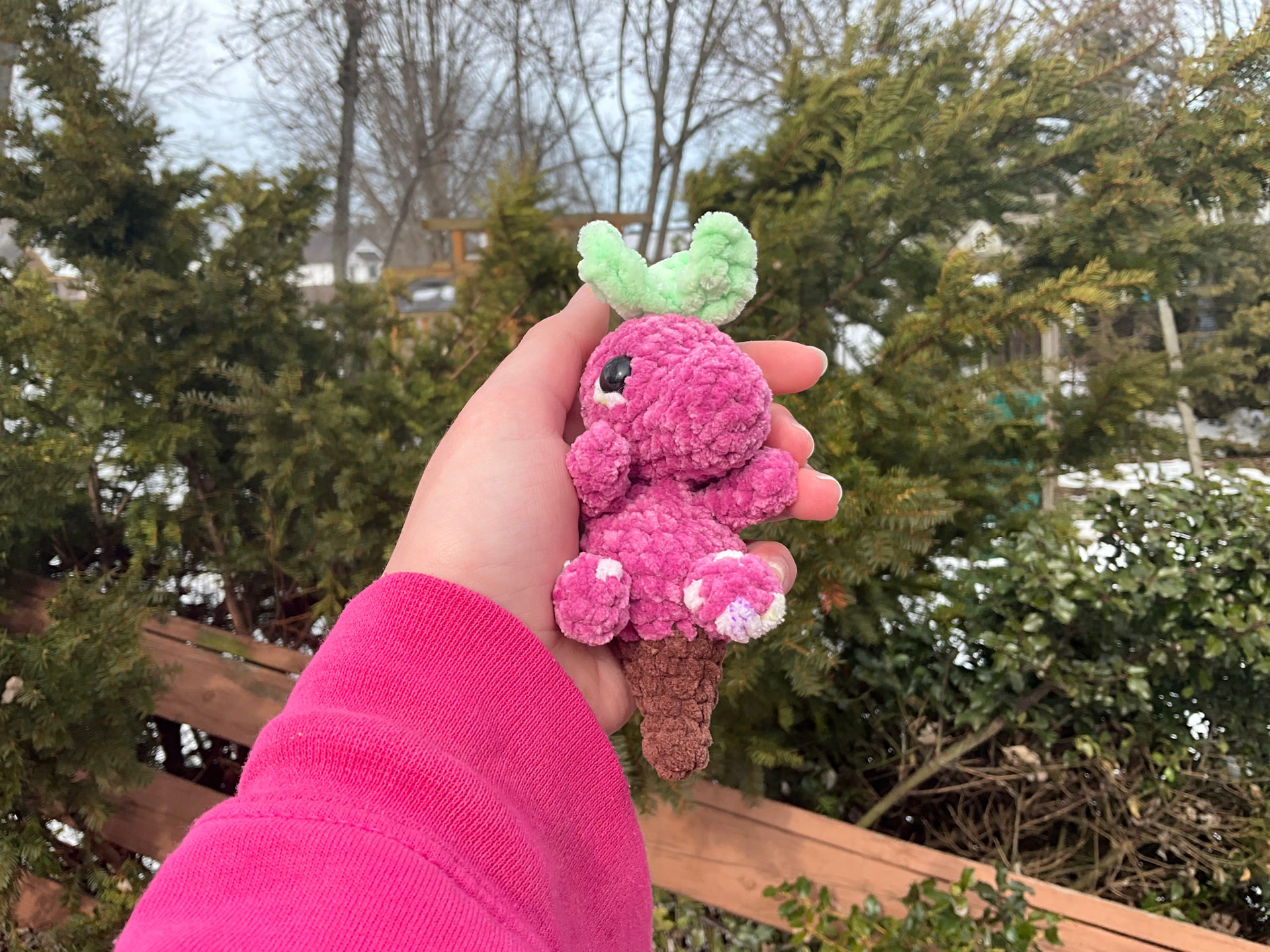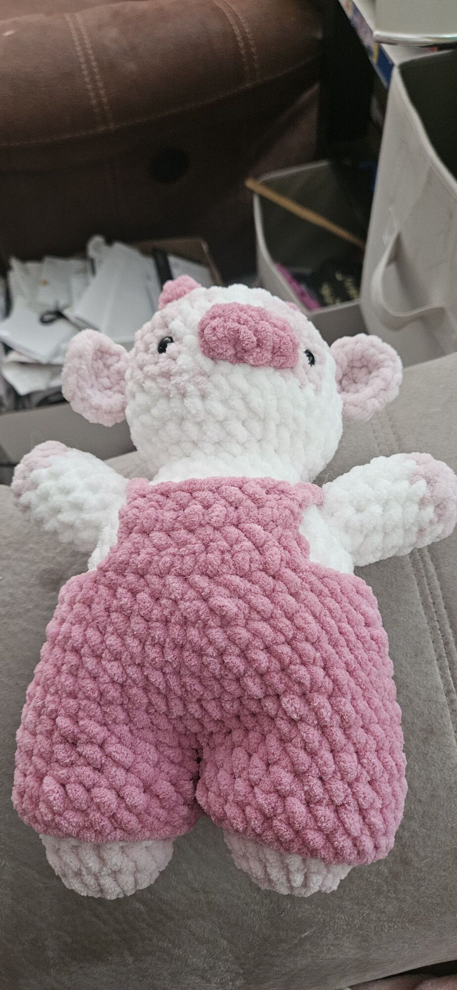 If chosen, I would use most likely 8ply acrylic yarn or velvet yarn! Either the colours I’m not so sure, but maybe a white or tan:) I would also use 3-4mm hook!