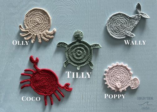 Five ocean-inspired coasters — Turtle, Whale, Pufferfish, Crab, and Octopus — are now all live in the shop!