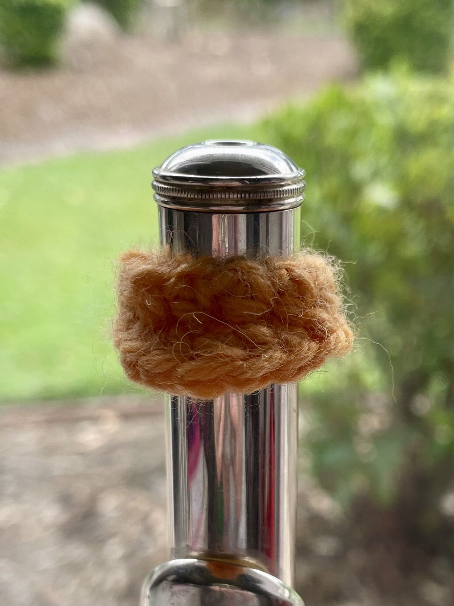 to make it fit a flute, use 8ply yarn and a 4mm hook, but you may need to adjust if your tension is different
