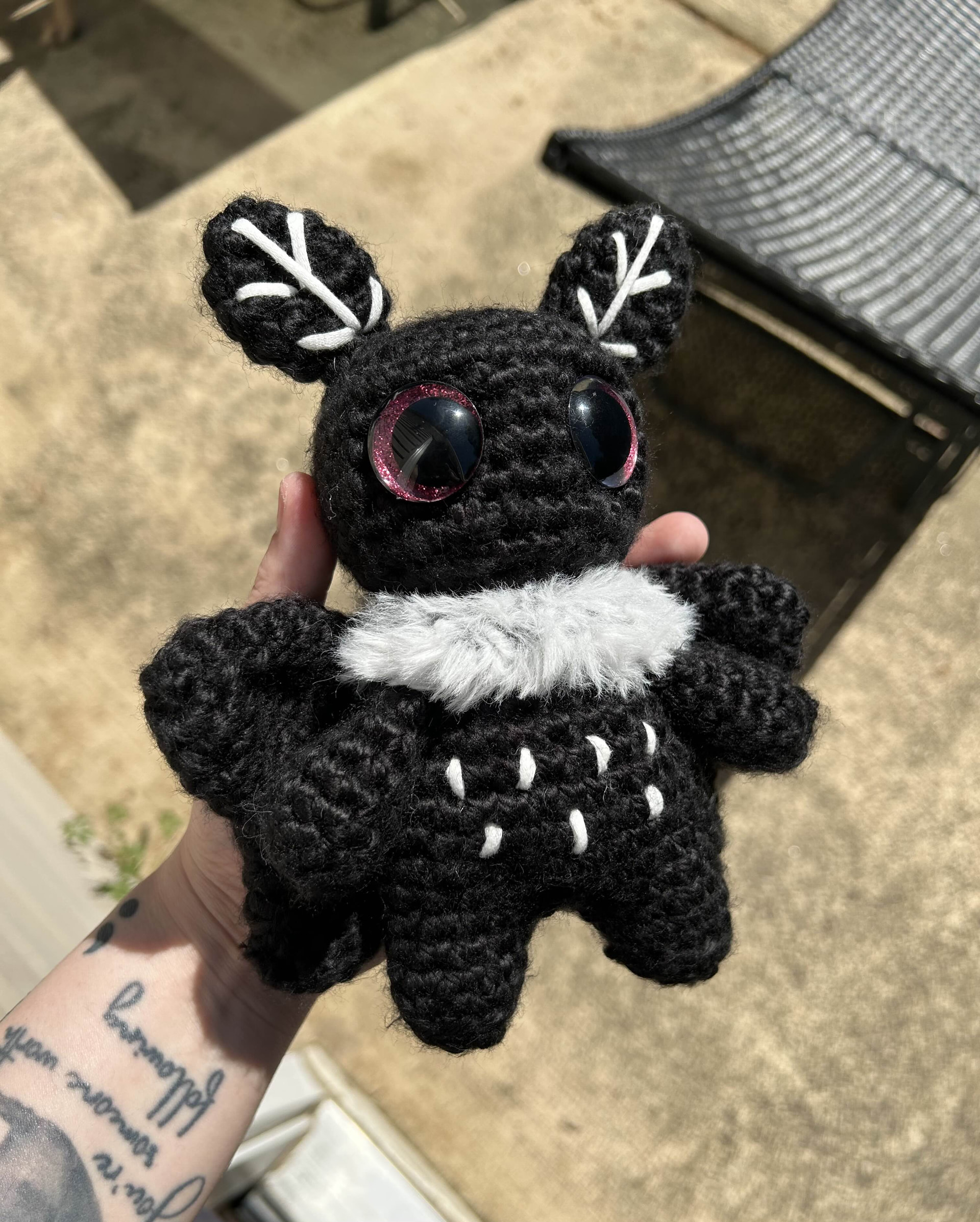 i can do the same bulky yarn I used for this moth man, or if you need acylic testers still, I have the yarn I used for this little doll.
