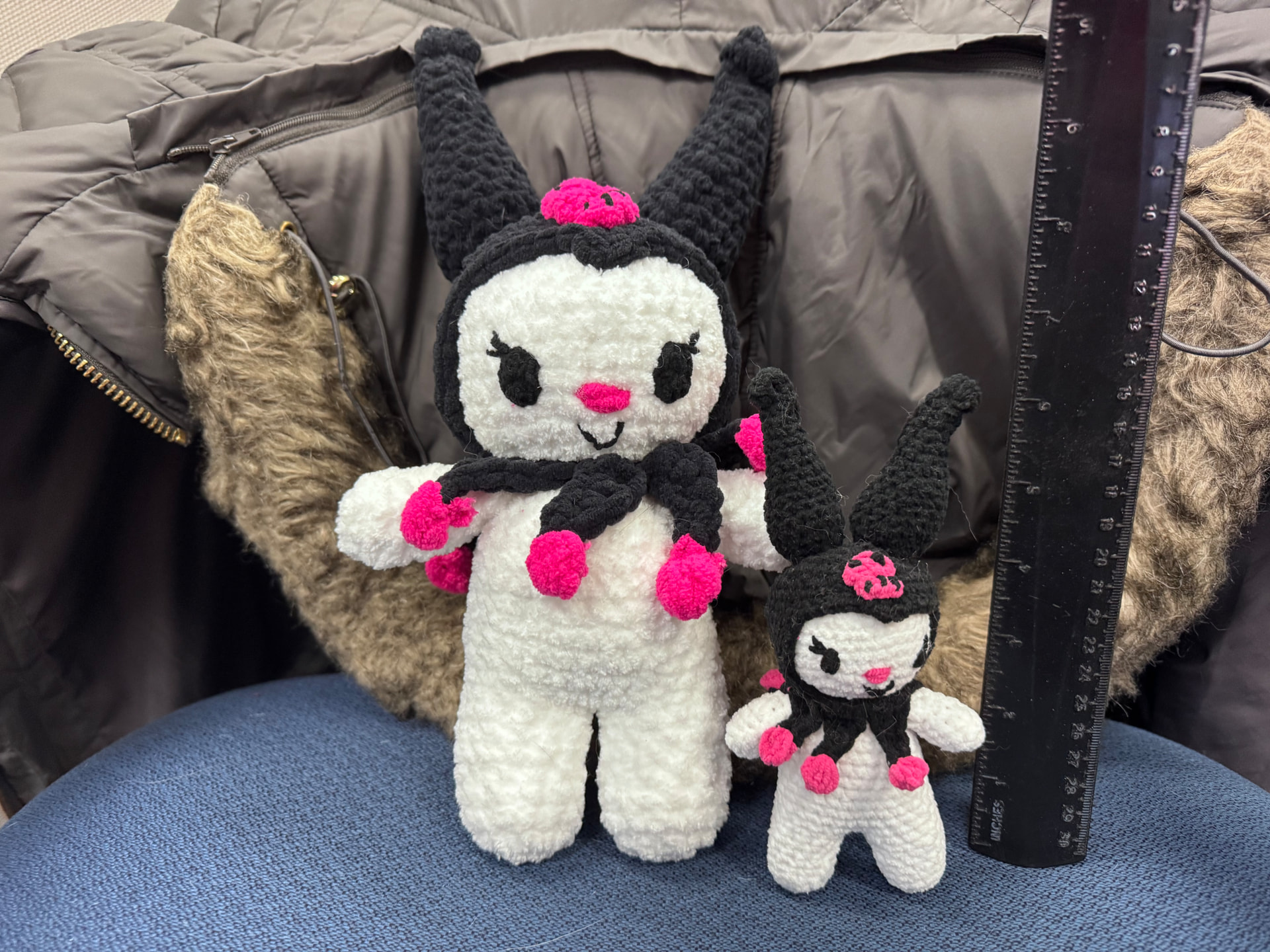 So I prefer chenille yarn bulk 6 and depending on that actual thickness I use anywhere from a 5.5 to 6.5 hook. Also have a weird thing to usually make a second one with skinny chenille yarn and a 3.0 hook. I like to see the difference. Have pretty much all colors at home. Always buy a ton of yarn. So can do same colors as you or different. I’m not picky. I usually just ask my 19 year old daughter what she wants me to use. So tell me what you prefer.