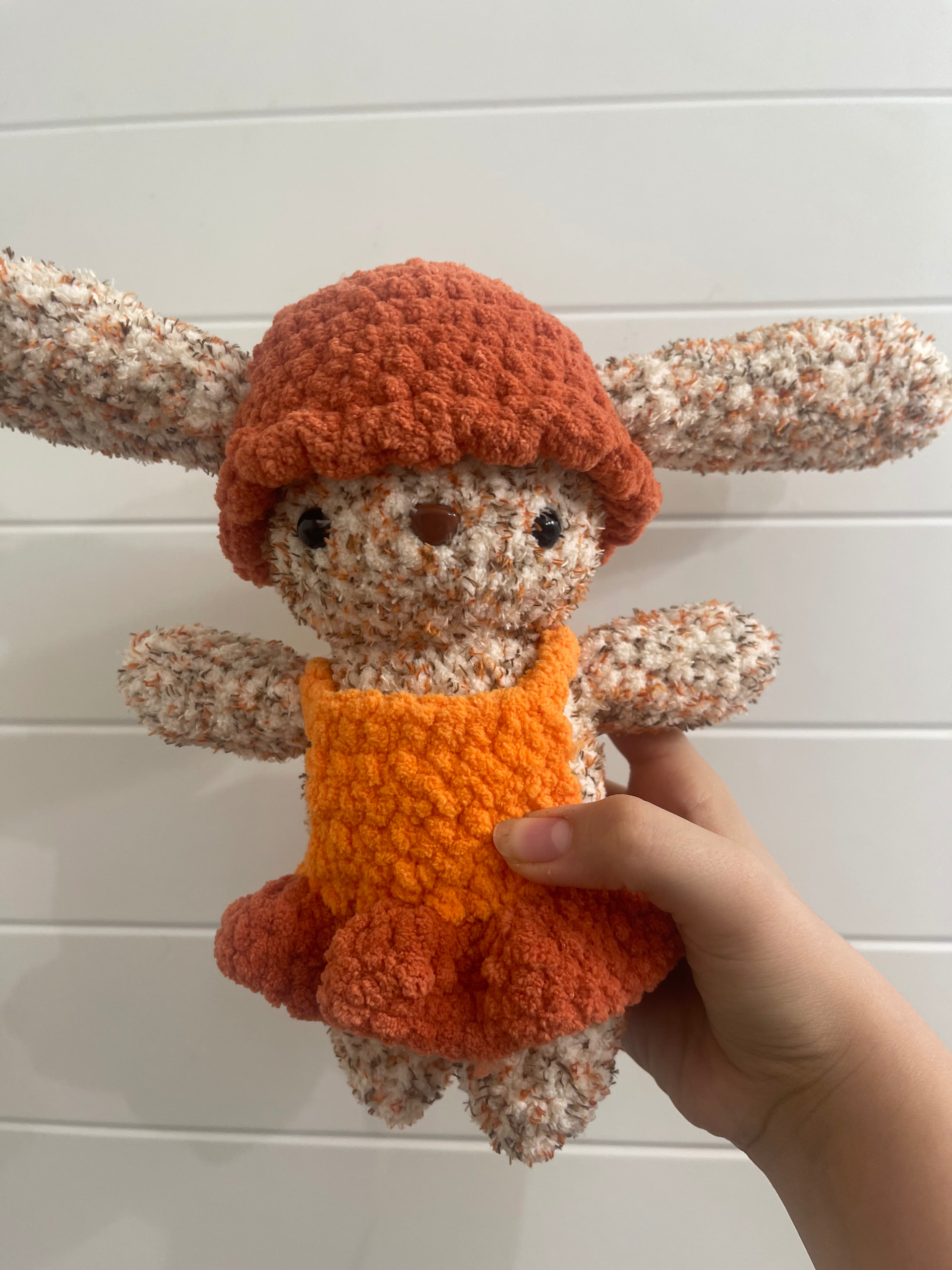 I could use acrylic or blanket yarn. I’d probably stick close to the same colors, maybe a lighter brown if or a speckles brown for the fur.