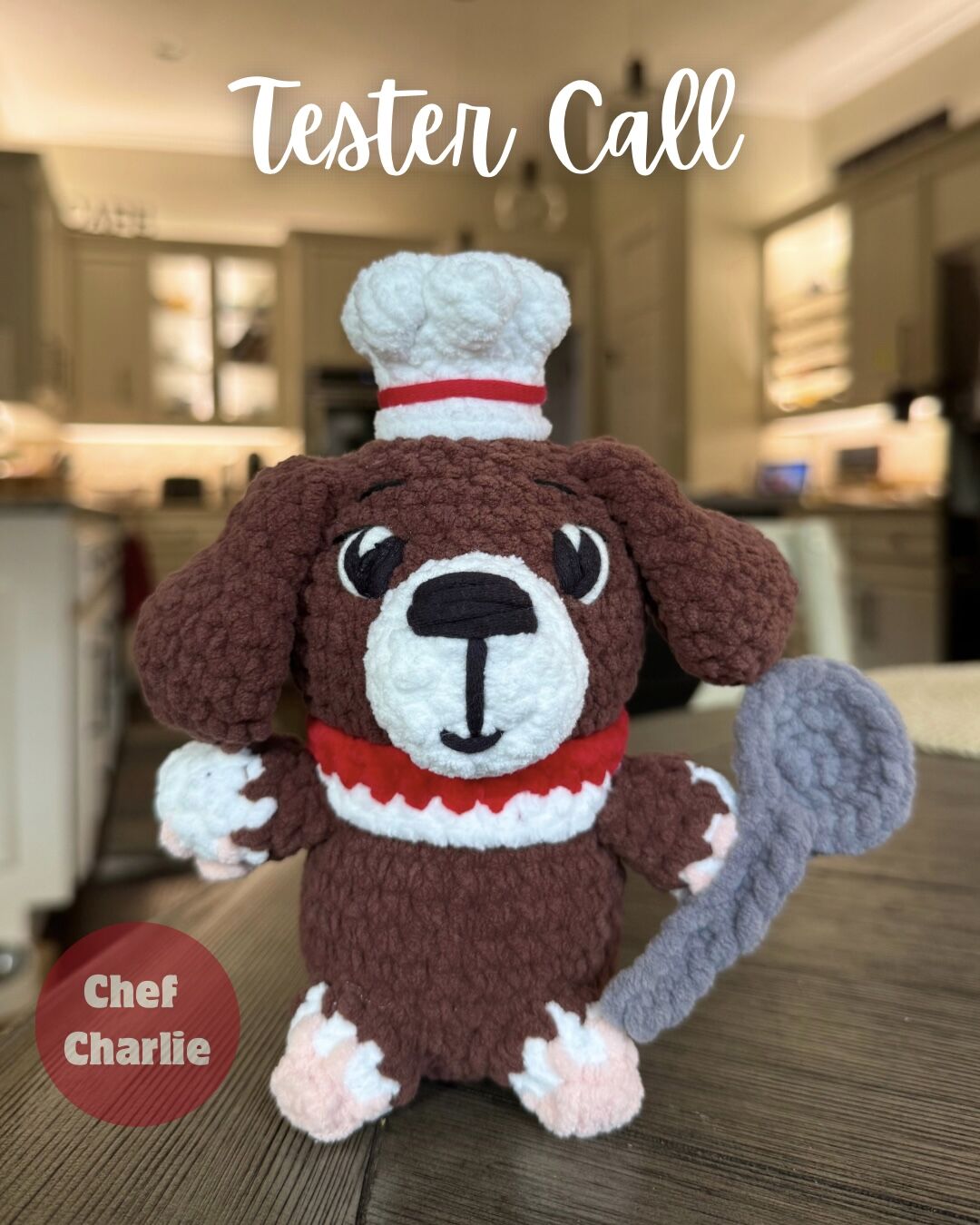 I’m excited to share my first pattern, a puppy chef named Chef Charlie!