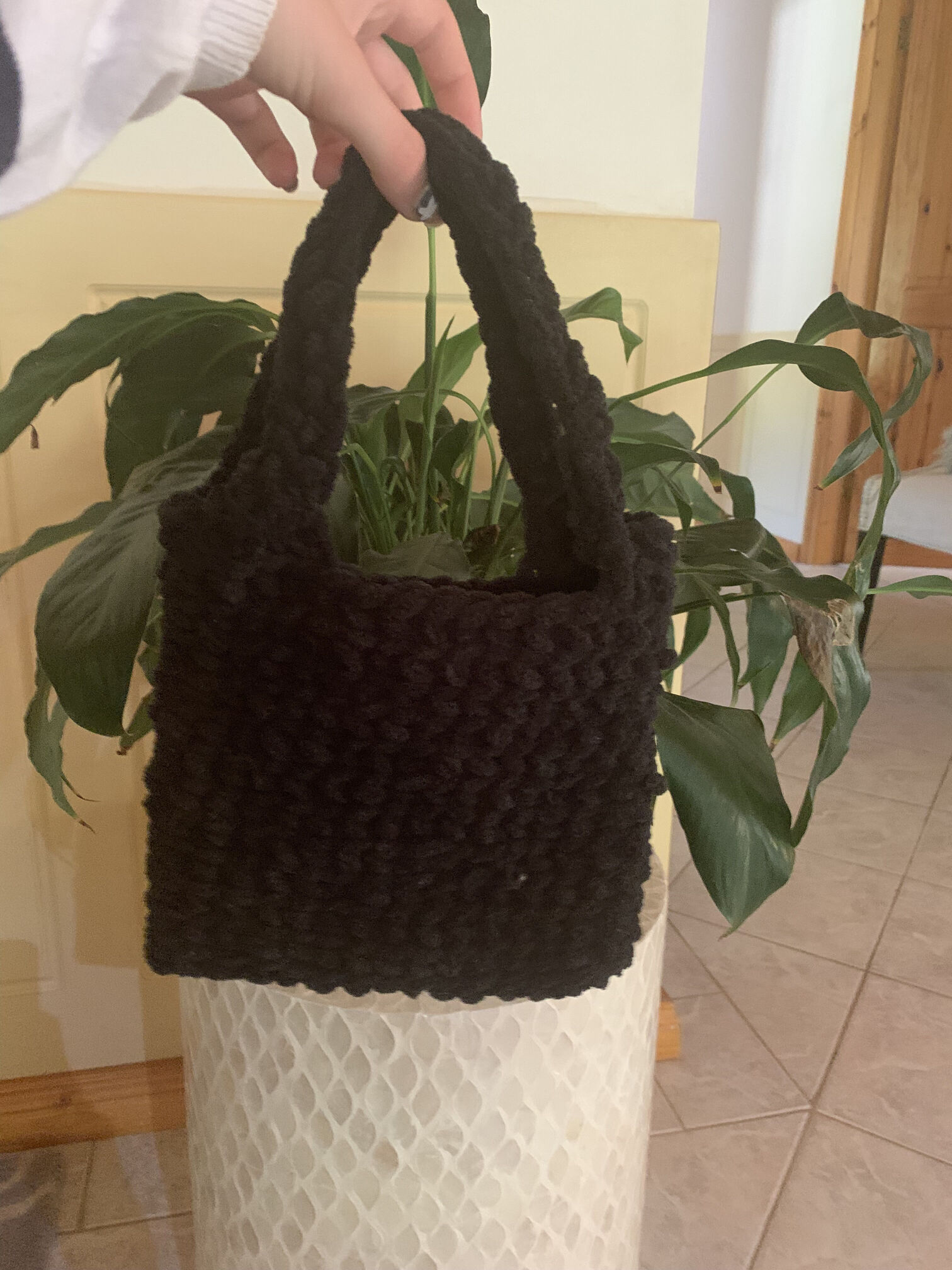 yarn: white thin yarn with a 4mm hook (white)