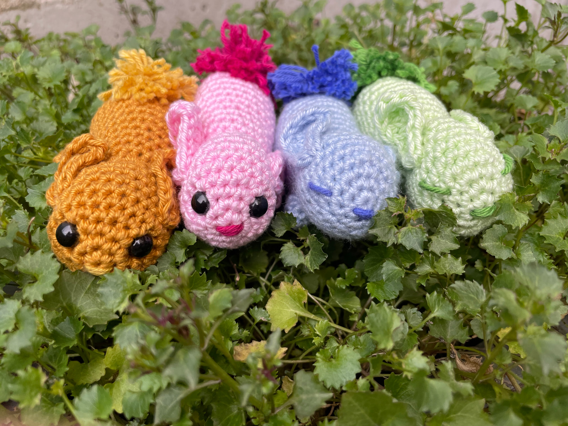 I would probably crochet with chenille yarn, but I also love crocheting with cotton yarn, so maybe I would make some with chenille and some with cotton yarn (and 3 mm hook)