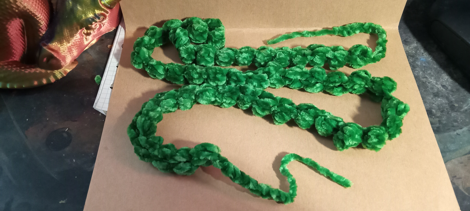 I’ll give it a go..I didn’t see a picture on my end for what the garland is but I’d be using chenille yarn with the right sized hook depending on the color..it seems that my different colors require different hooks lol
