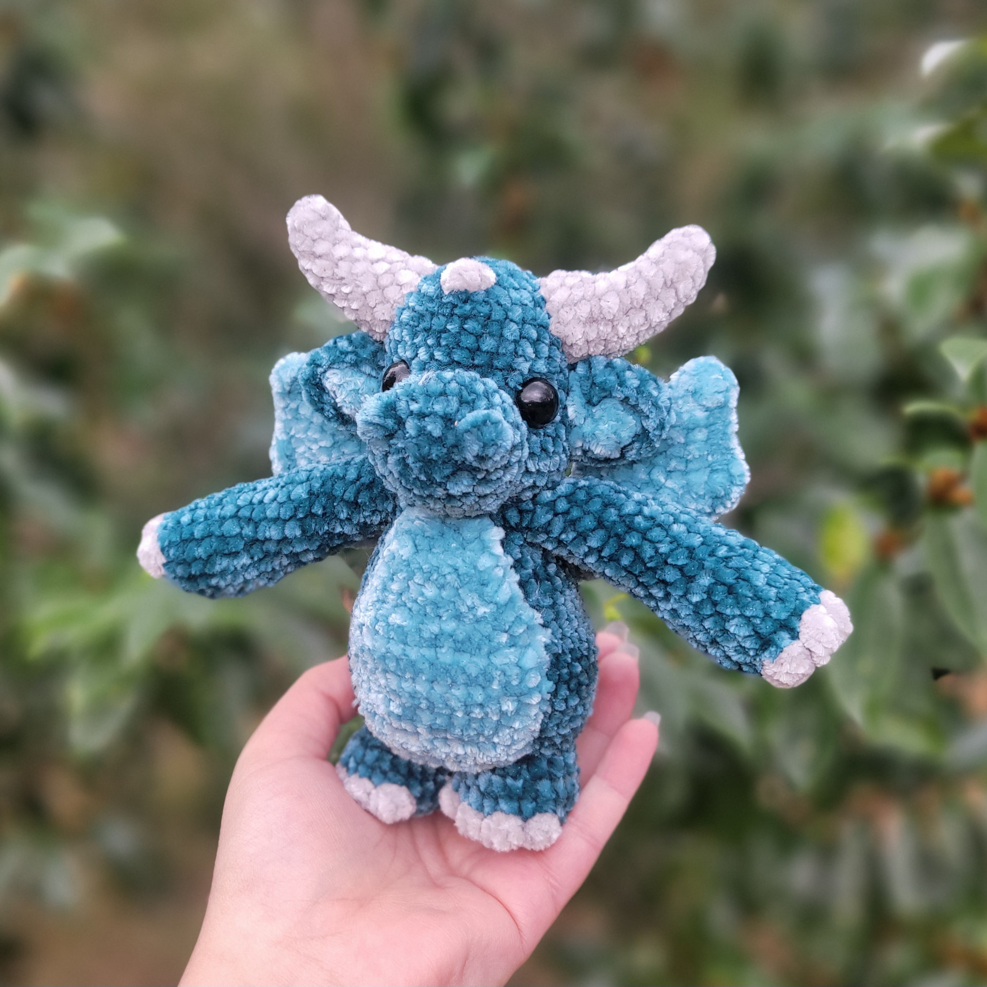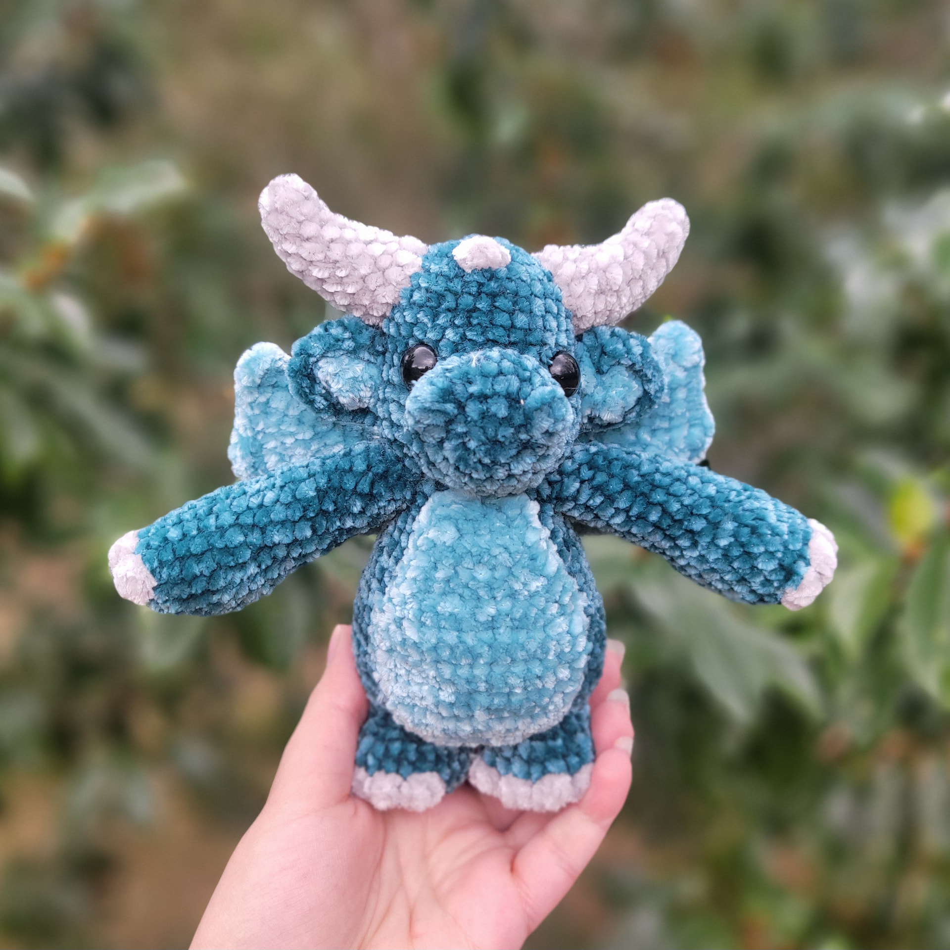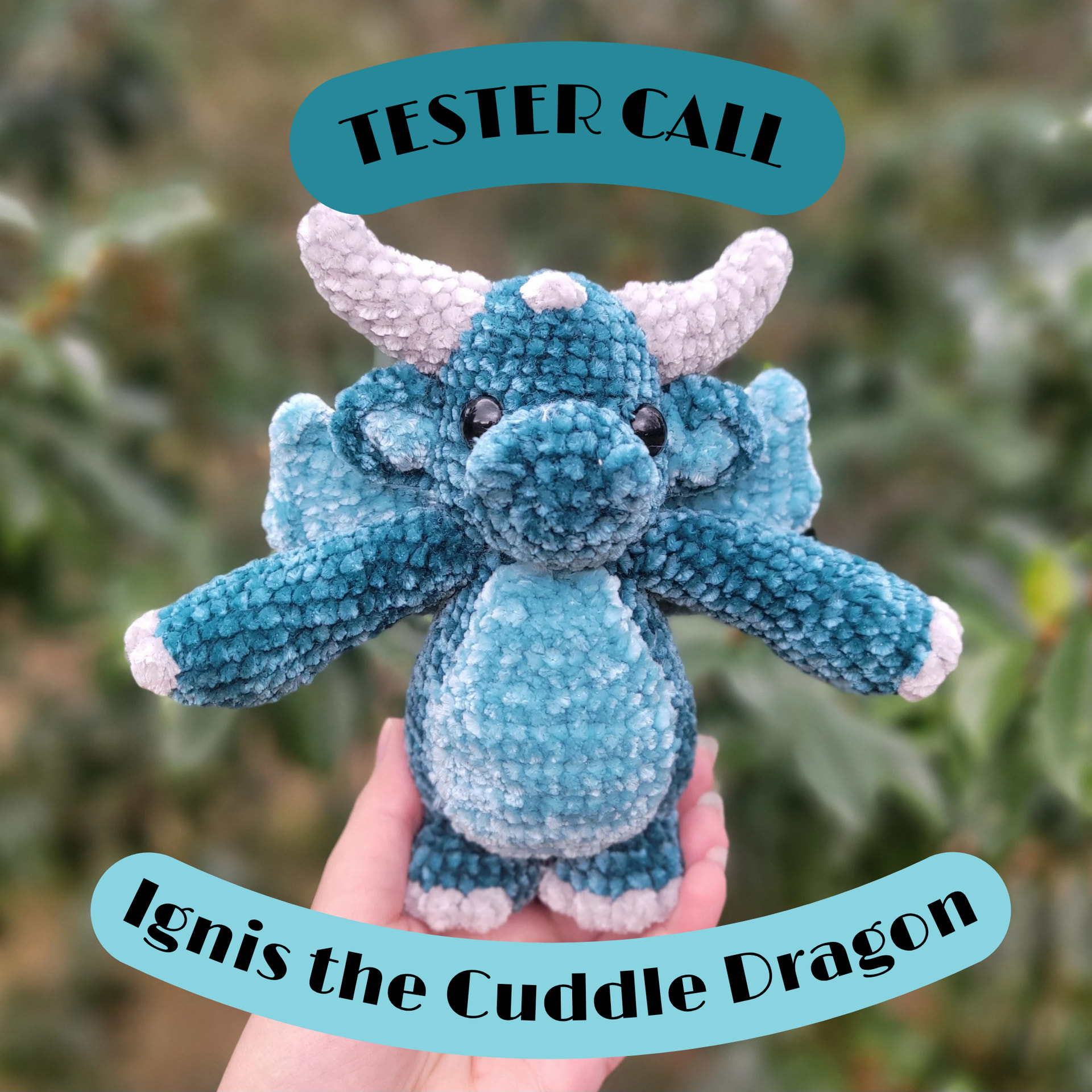 Would love to test! Thinking of using purple and either blue or turquoise as an accent colour plus white for the horns/spikes, probably chenille yarn (weight 5) with a 4.5 or 5mm hook